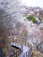 木栈道桃花林蓝天白云心旷神怡超级出片