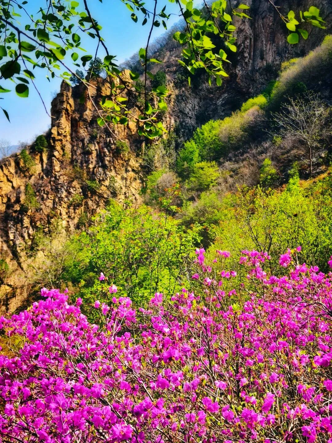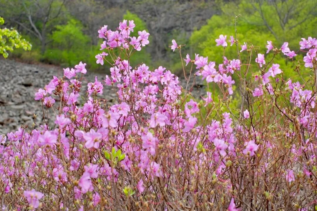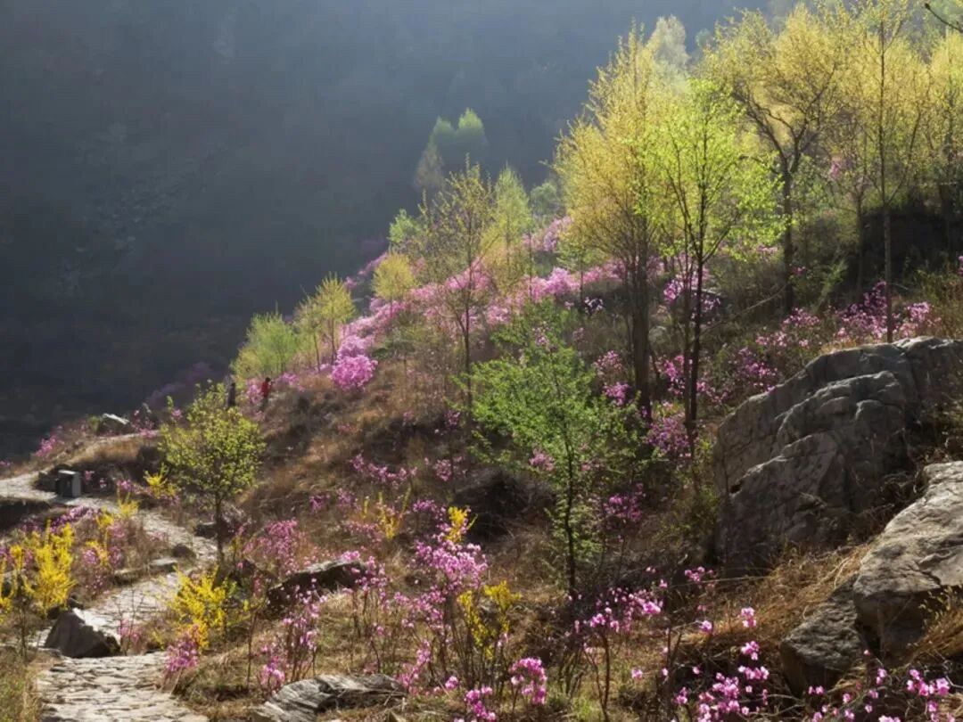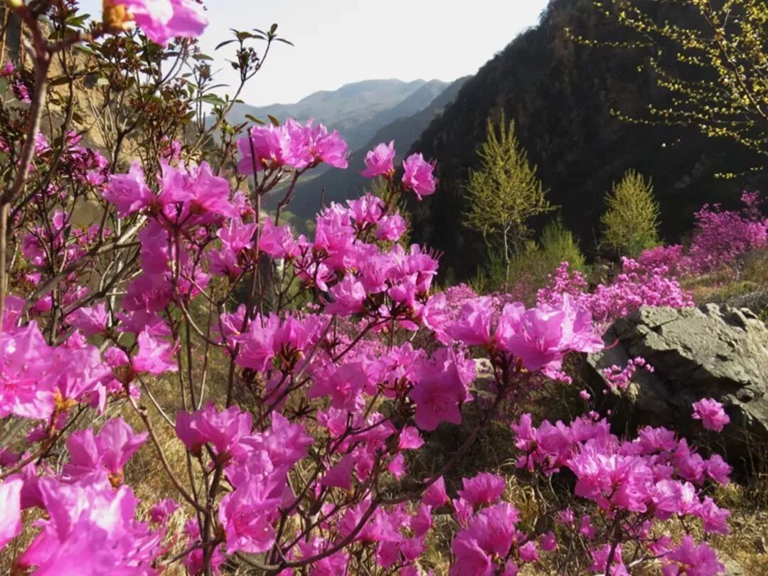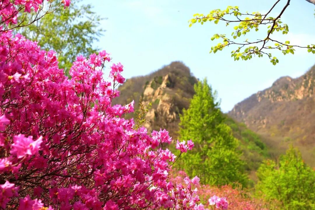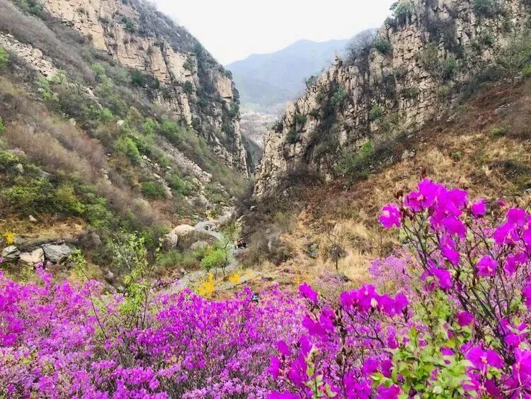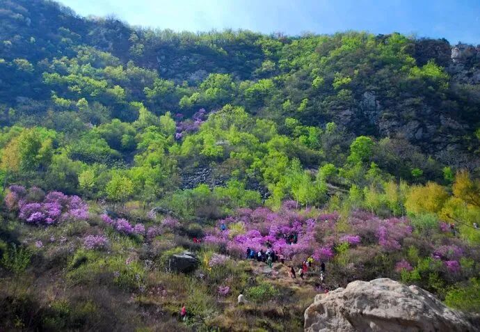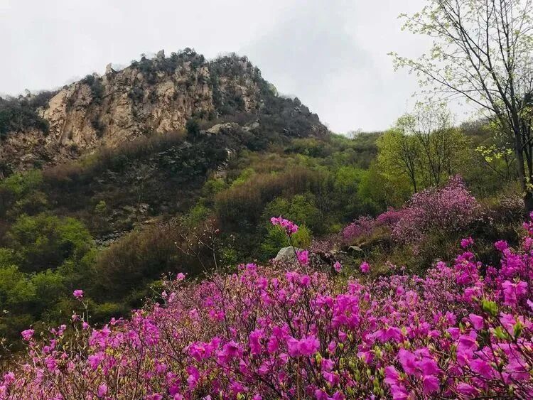 - 黄梁根村位于密云区冯家峪镇,村中山谷隐藏着一片颇为恢弘和集中的杜鹃花海,每年4月中至下旬,杜鹃花一丛丛地环绕生长,或形成一大团,或铺展成一大片,山谷被杜鹃花装点得如诗如画,因此也被人们形象地称为“映山红大峡谷”。杜鹃花铺满山腰,缠绕山峦,与满山翠绿交织成一幅浓墨重彩的山水画卷,让生活的疲惫瞬间消除。