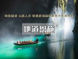 - 适时集合前往【女儿城】。下午大家自由游览“世间男子不二心,天下第一女儿城”的土家女儿城,更有大型室外情景区《赶场相亲会》表演可以观看。小吃街、民俗博物馆、酒吧街、中国首创室内情景剧场女儿城大剧院,都能让你了解到多情旖旎的土家族风情,感受这个少数民族的生活文化。还可以亲身体验土家族的摔碗酒、摆手舞等土家风俗。这是一个在一座城里看尽恩施民俗风情的地方,能够恩施本土阿哥幺妹同聚一地。