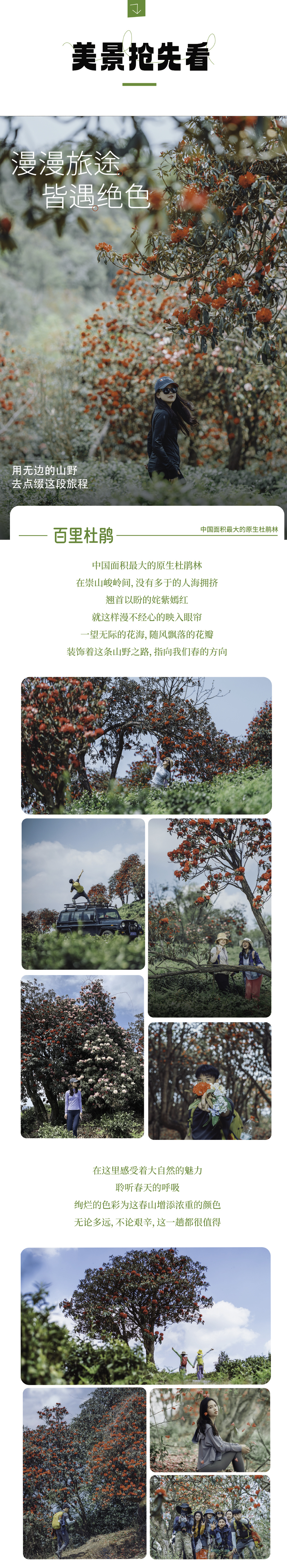 早餐后,乘车出发——百里杜鹃。抵达徒步起点,热身后开始徒步,沿途游览茶海花地,杜鹃花海;(我们徒步路线避开了百里杜鹃景区的人山人海,路线游人稀少,不用排队人挤人,独享一片壮美的花海)。
