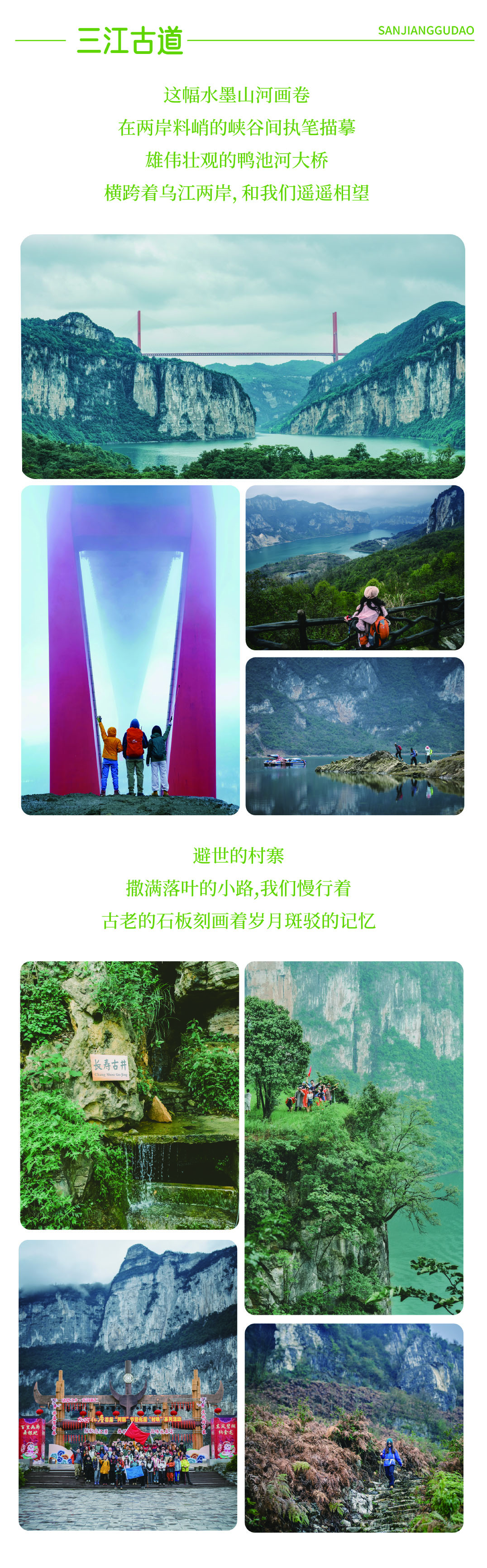 早餐后乘车前往黔西三江密道徒步起点,整理装备,简单热身后开启今日的徒步旅程,沿乡道,山路、绿道徒步。(中午适时分享各自带来的美食午餐)。