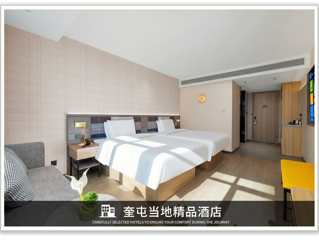 乌鲁木齐当地精品酒店(标间,独卫)*1晚,赛里木湖门口舒适型酒店(标间,独卫)*1晚,库尔德宁当地特色民宿(标间,独卫)*1晚,伊宁当地精品酒店(标间,独卫)*1晚,那拉提当地精品酒店(标间,独卫)*1晚,奎屯当地精品酒店(标间,独卫)*1晚,