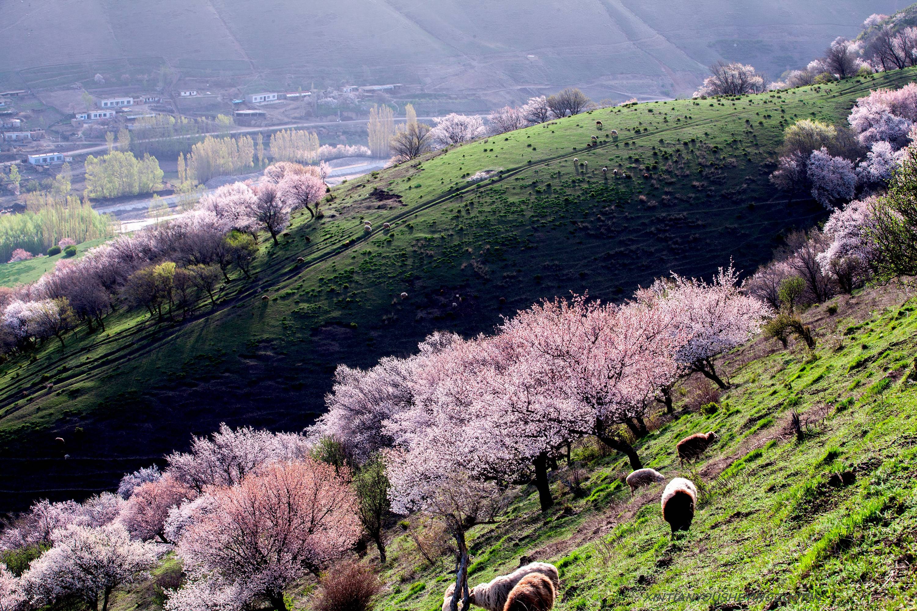 早起后前往萨哈乡,由于交通不便,这里几乎成了一个与世隔绝的地方,仿佛是从诗经里走出来的绝美之地。“萨哈”的汉语意为“在水一方。每逢4月底5月初夏,漫山遍野的野苹果树开着粉的、红的、白的、紫的花,香溢四谷。此时进入林海,身处花海,群蜂嗡嗡,蝴蝶飞舞,其间伴有鸟鸣,真乃修身养性之处,给人以世外桃源之感。今天我们除了拍摄苹果花,还可以探秘六百年果树王,賞黑湖,登望峰台,还可看到哈萨克人跨马扬鞭,一边放着羊群等牲畜,一边驰骋在辽阔的草原。
