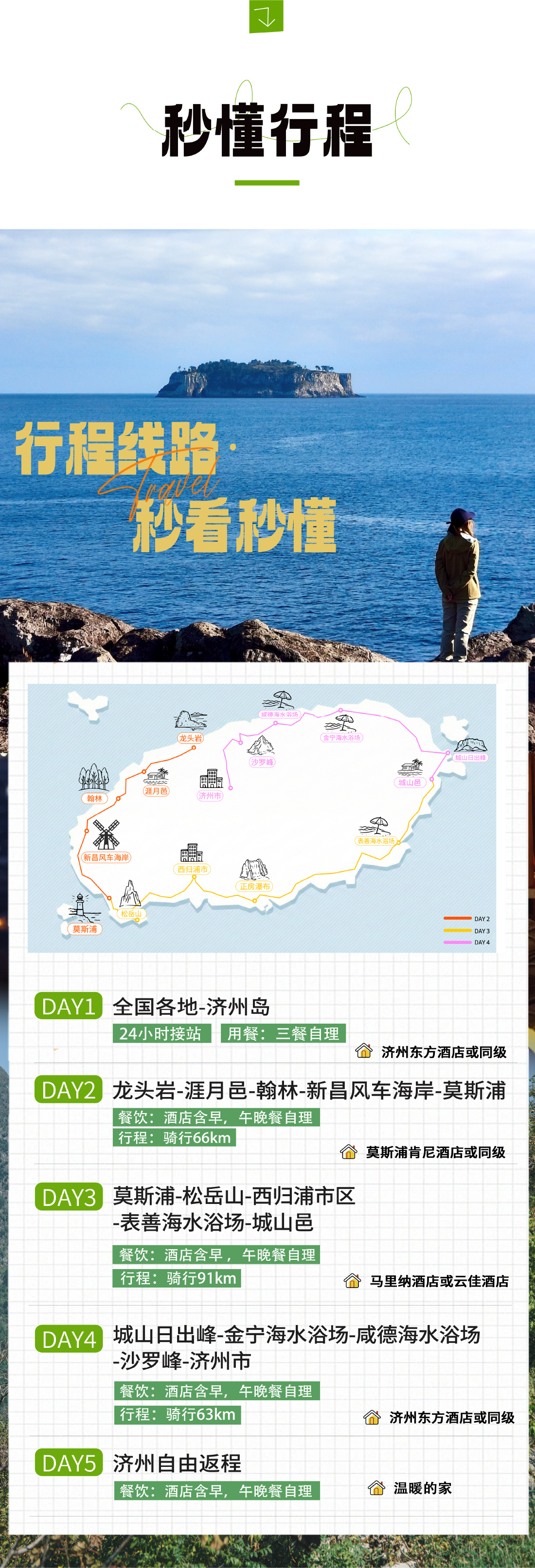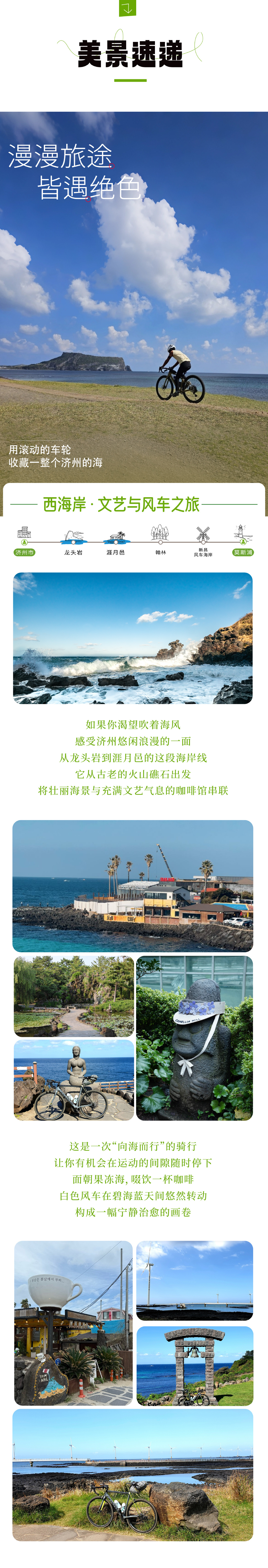 · 路线规划:济州岛骑行有特定的线路,需根据领队指示,按照既定线路进行。