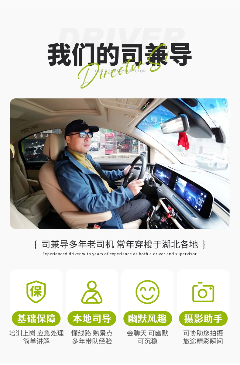 (3)座位:左手第一个座位为驾驶员,右手第一个座位为领队,其他为普通座位,上车后请自行选择座位,长途旅行,队员之间请互相谅解;
