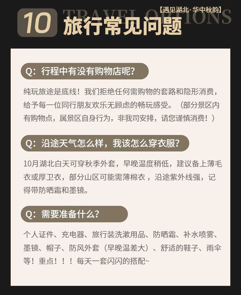 (3)五一、国庆黄金周:出团日期当中如有五一、国庆黄金周日期的团队,无论何时何地何种方式退团,所有费用不退。