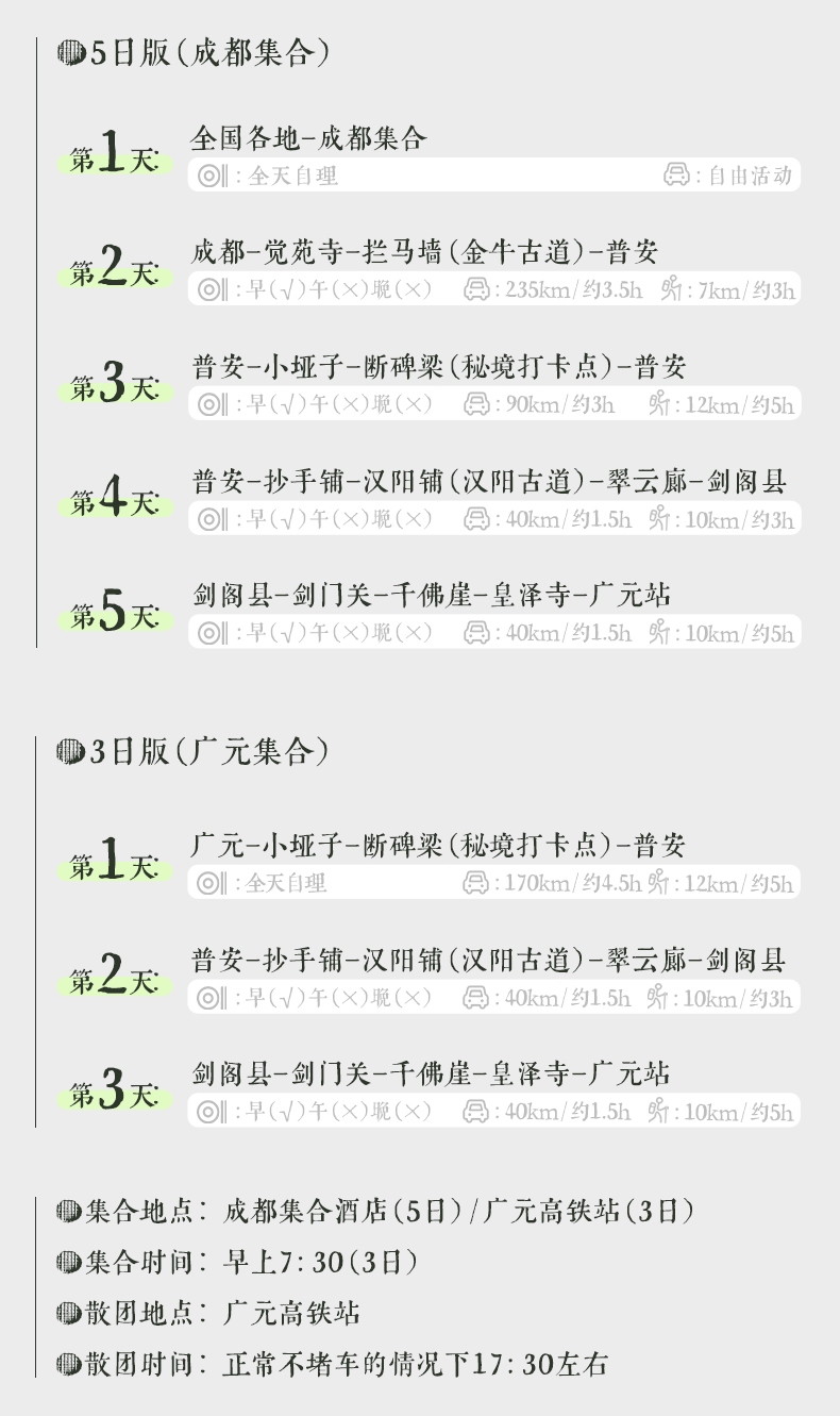 成都集合版:成都1晚,普安2晚,剑阁1晚;
