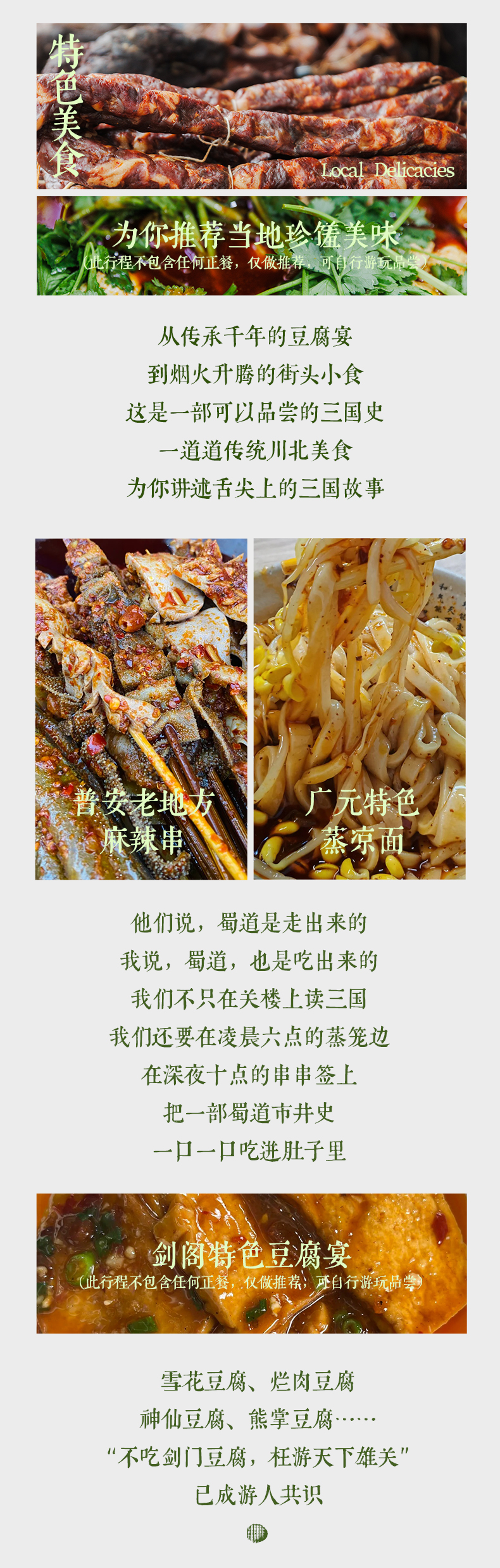 4人成行,30人满团 常规排期 成都集合版 2026年03月01日-06月30日 每周三发团 2026年07月01日-10月31日 每周三、周六发团 2026年11月01日-次年02月31日 每周三发团 以上活动价格(节假日除外):1980元/人 儿童价:1580元/人(不占床)(单房差:480元) 广元集合版 2026年03月01日-06月30日 每周五发团, 2026年07月01日-10月31日 每周五、周一发团 2026年11月01日-次年02月31日 每周五发团 以上活动价格(节假日除外):1580元/人 儿童价:1280元/人(不占床)(单房差:280元) 节假日排期 成都集合版 2026年04月01日-04月05日(清明节) 2026年04月05日-04月09日(清明节) 2026年04月30日-05月04日(劳动节) 2026年05月01日-05月05日(劳动节) 2026年06月17日-06月21日(端午节) 2026年09月23日-09月27日(中秋节) 2026年09月30日-10月04日(国庆节) 2026年10月01日-10月05日(国庆节) 2026年10月02日-10月06日(国庆节) 2027年01月01日-01月05日(元旦节) 以上活动价格:2480元/人 儿童价:1880元/人(不占床)(单房差:680元) 广元集合版 2026年04月03日-04月05日(清明节) 2026年04月07日-04月09日(清明节) 2026年05月02日-05月04日(劳动节) 2026年05月03日-05月05日(劳动节) 2026年06月19日-06月21日(端午节) 2026年09月25日-09月27日(中秋节) 2026年10月02日-10月04日(国庆节) 2026年10月03日-10月05日(国庆节) 2026年10月04日-10月06日(国庆节) 2027年01月03日-01月05日(元旦节) 以上活动价格:2080元/人 儿童价:1680元/人(不占床)(单房差:480元) |