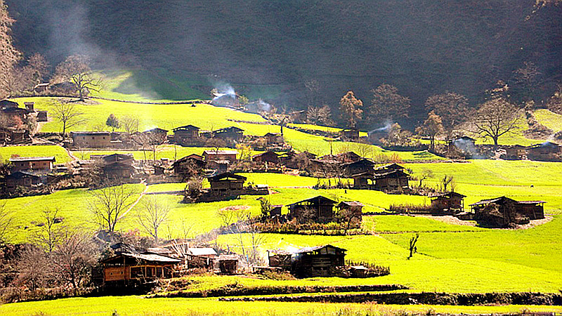 早餐后前往中国樶原生态的村寨,打卡丙察察段滇藏界,这里是云南跟西藏交界处,也是不允许外国人进入的一个地方。随后前往樶美生态村庄【秋那桶村】,徒步怒江边上古老的茶马古道,领略悬崖上的茶马古道,徒步抵达油画小村【雾里村】,随后乘车途经石门关离开丙中洛。跨越怒江大桥沿着德贡公路前往孔雀山,穿越峡谷和蜿蜒的山路,约1.5小时抵达孔雀山。
