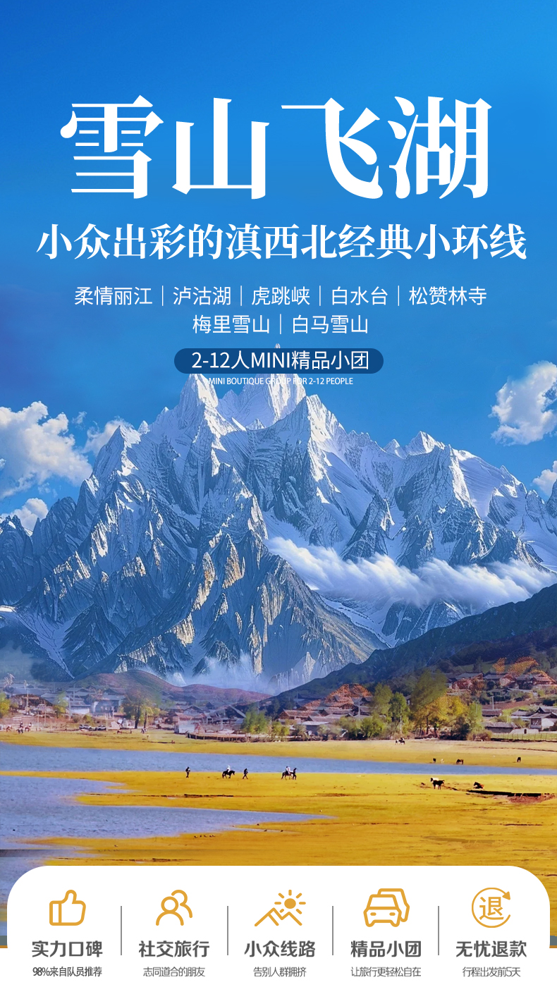 ▷集合地点:丽江市指定酒店(报雪山飞湖+名字入住);