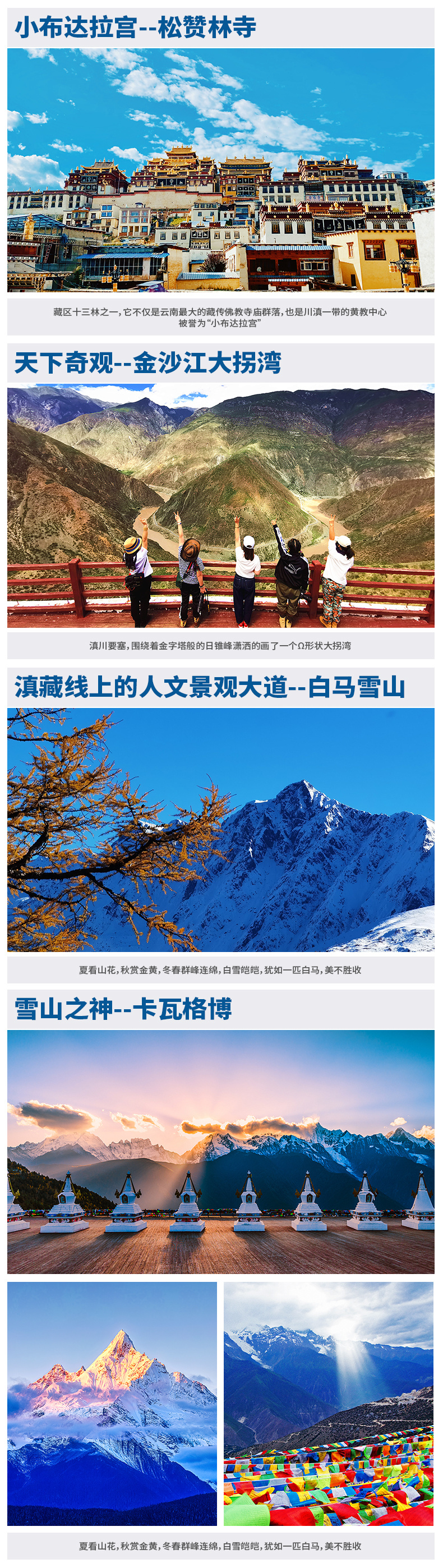 香格里拉→噶丹.松赞林寺→奔子栏→金沙江月亮湾→飞来寺