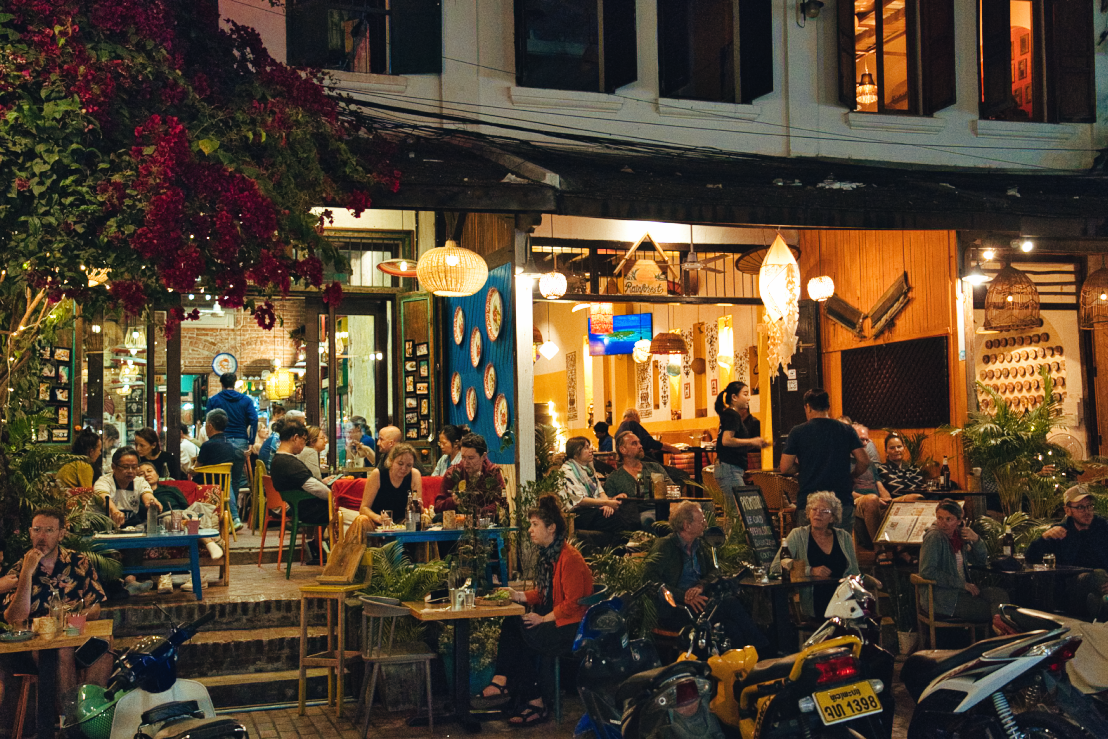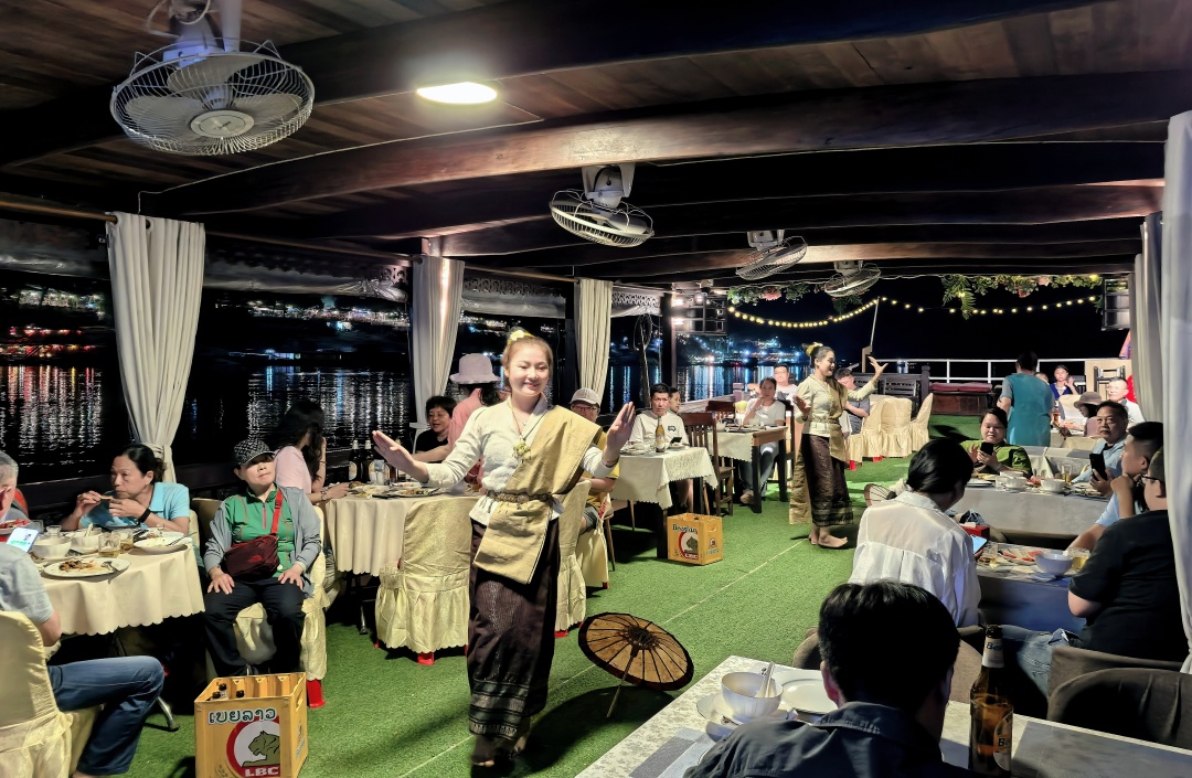 入住后前往湄公河码头,【乘船畅游湄公河】欣赏岸风光,听听音乐,感受老挝的慢生活。我们乘坐特色游船,穿梭于湄公河上,欣赏两岸的琅勃拉邦独特建筑,享受旅行的闲霞时光。晚餐建议在游船上吃,可以欣赏醉美日落和湄公河两岸的迷人夜景,还能欣赏老挝姑娘欢歌载舞哟。体验完湄公河游船后前往琅勃拉邦古城,漫步【法国街夜市】,每当夜幕降临,华灯初上,原本白天清闲的街道,转眼间变得热闹非凡,各种夜市赶摆不仅热闹非凡,琳琅满目,且物美价廉,人间烟火最抚凡人心。