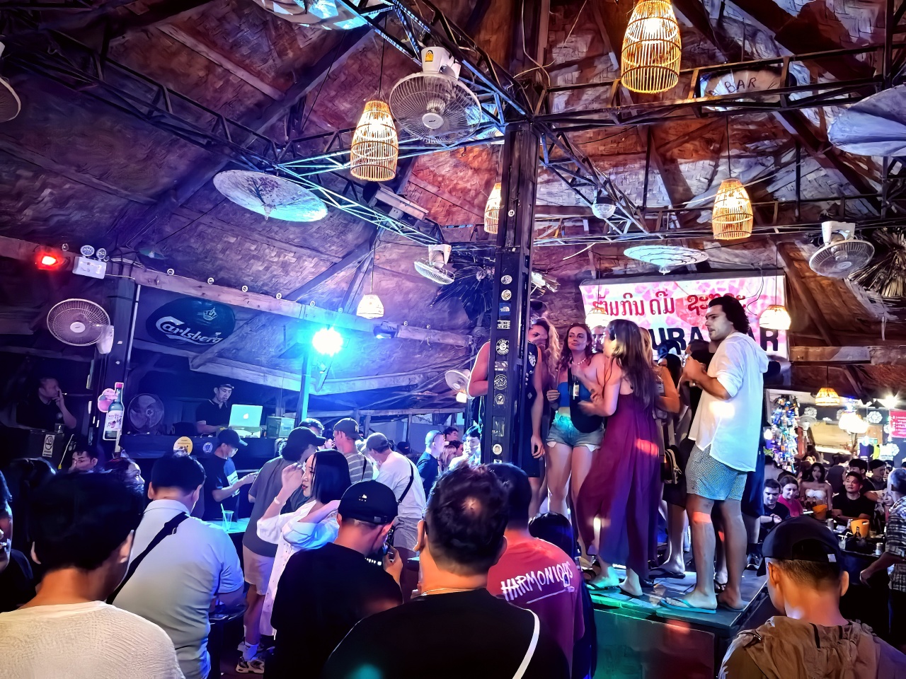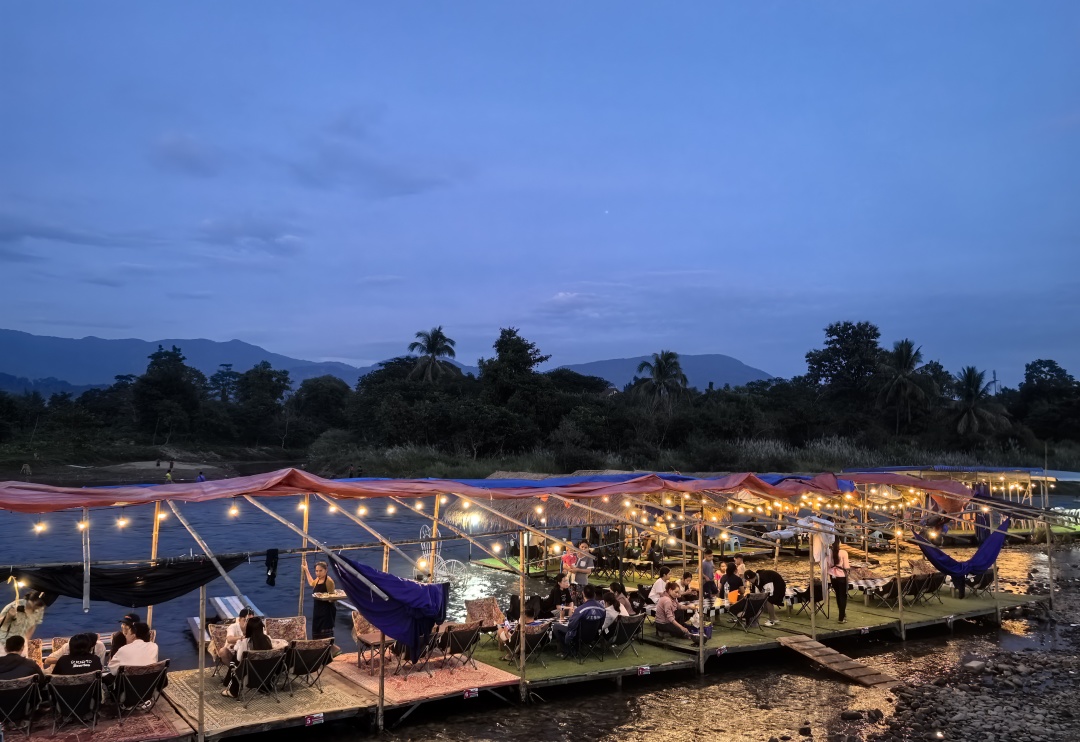 随后返回酒店,晚餐可以前往南松河边,有很多不错的老挝特色餐馆,景色相当不错。晚餐后体验【万荣酒吧街区】老挝狂欢派对,各种风格酒吧、各国特色餐厅琳琅满目,其乐无穷,吸引着无数欧美青年背包客在此相聚。