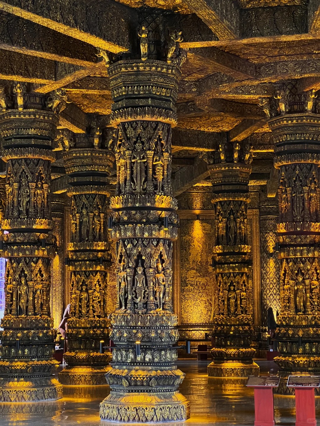 随后乘车前往老挝首都【万象】,途经【老挝国家艺术博物馆】,这个艺术博物馆虽然远离万象市区且门票相对不菲,由老挝前首富 Phisith Sayathith 斥巨资打造,馆藏超过 2 万件佛像、木雕与沉香艺术品,目前仅首层开放,未来还将扩建更多展区与珍藏,被誉为“东南亚最震撼的木雕圣殿”,是初来老挝万象游客高优先级到访的打卡点。随后前往游览【塔銮寺】,据说最早能追溯到公元前3世纪,1566年由澜沧国王塞塔提拉扩建,后来又多次修复,才有了现在的模样。它不仅是宗教建筑,更是老挝历史的见证者,在老挝人心中地位极高,国徽上都有它的身影。