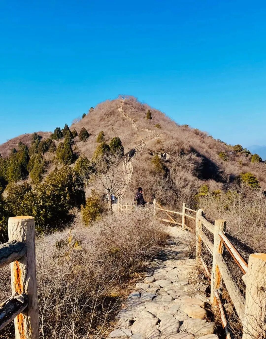 该条线路比较简单,老少皆宜,特别适合新人体验。前一小段是干净平坦的石板路,然后经过不高的登山石阶,半小时便能到达山脊,大多时间我们都是行走在山脊线上,脚下就是金海湖,视野开阔,景色壮观绝美,后半段我们沿着水边走的蜿蜒石子路和沙滩行走,最后穿越小树林返回栈道下山沿公路返回。