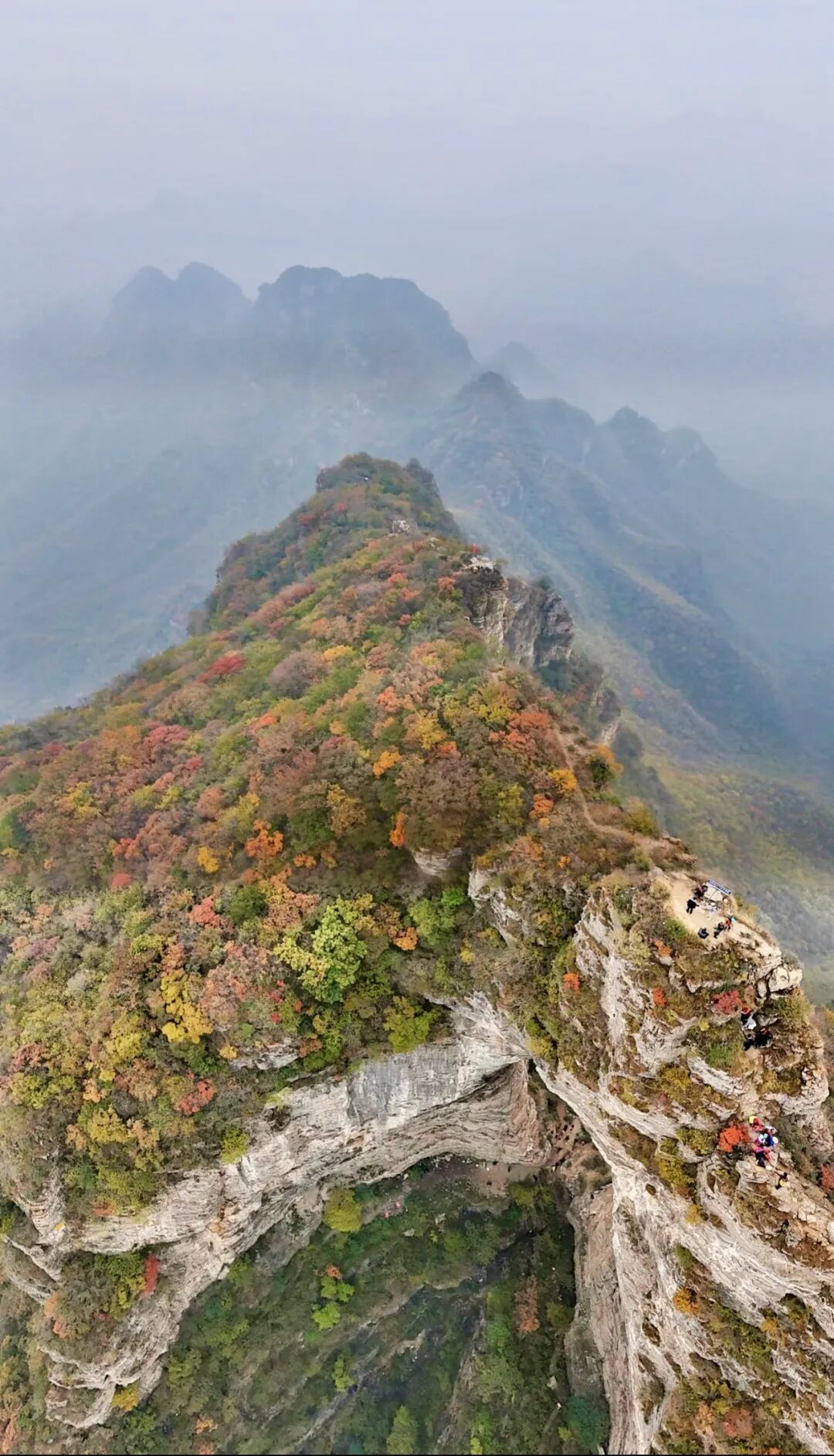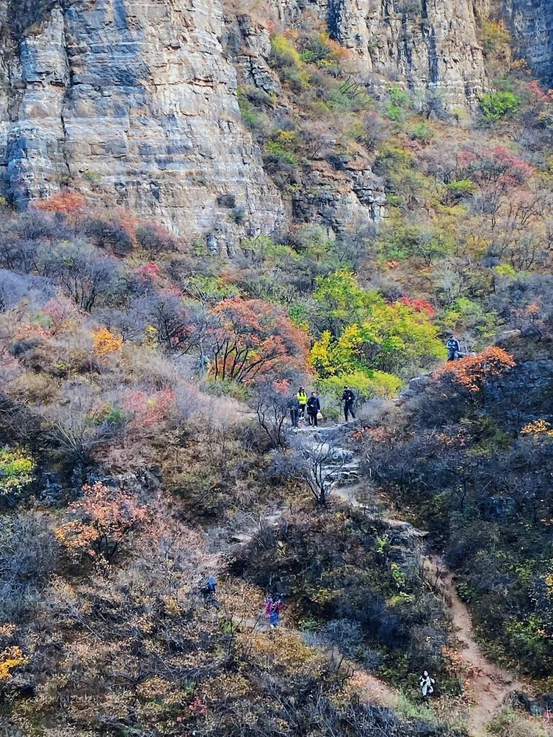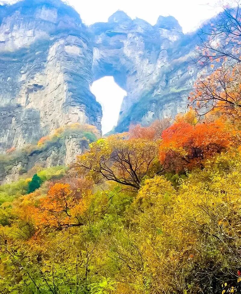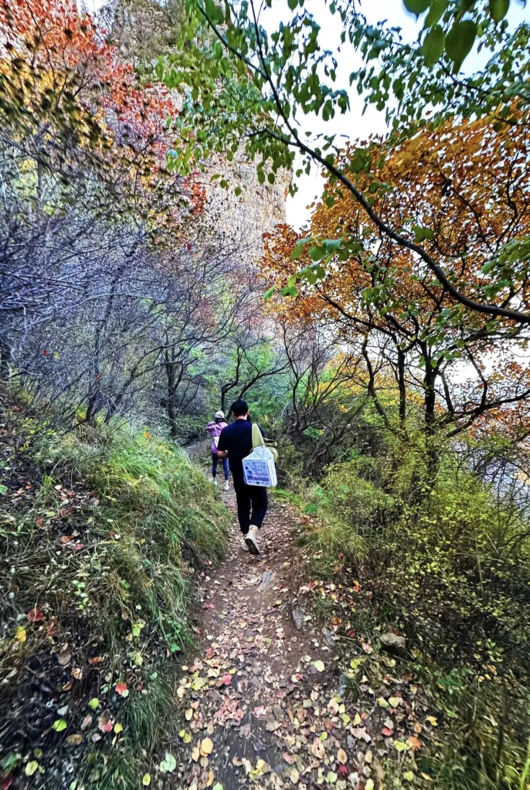 这里群山环抱,云雾缭绕,潺潺清泉,啾啾鸟鸣,无不令人心旷神怡。这里的秋色更是无可挑剔,枫叶像一面面小红旗在山间飘过;黄栌叶像一颗颗金黄的果实在树间摇动。山径曲折回旋,可沿路攀援,亦可独辟蹊径,山之巧然,尽孕其中。