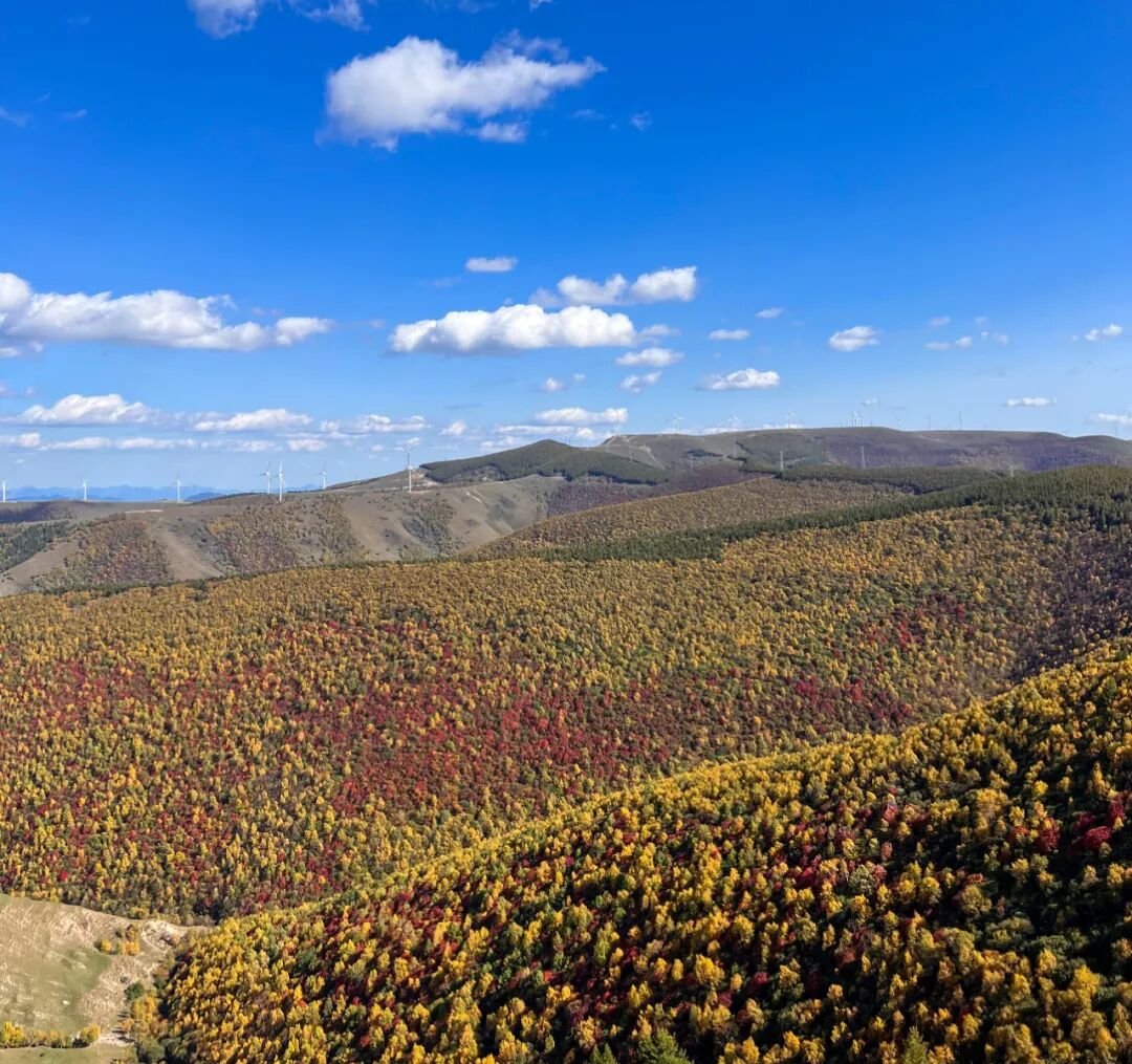 在坝上崇礼和坝下张北的交界处,燕山余脉和张北草原在此邂逅,大山和草原的邂逅,让这里的山脉褪去了险峻的棱角,变得平缓且温柔,全程路况为机耕路+高山草甸,难度不大,适合身体健康新人体验。