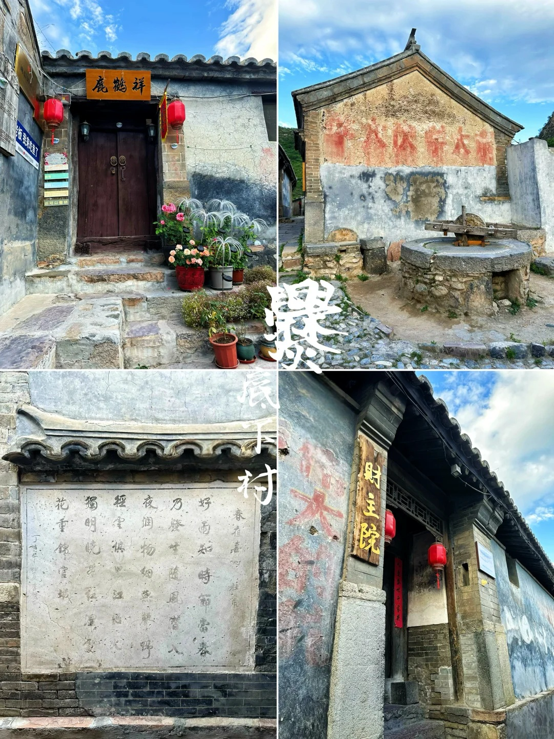 - 09:30|到达『爨底下村』游览,探访古村落。爨底下村距今已有400多年历史,保存着70余套明清时代的四合院民居,著名电影《投名状》正是在此拍摄的。村里的老建筑都可以进入参观,比较气派的有财主院、五道庙、关帝庙等。村对面金蟾山山腰上的观景台等。