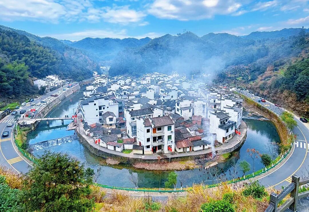 菊径村菊径村始建于宋代初期,整个村庄布局独特,文化底蕴深厚,是个典型的山环水绕型村庄,四周高山环绕,一条小溪环绕整个村庄,符合中国的八卦“后山前水”设计,被誉为“中国最圆的村庄”,犹如世外桃源。