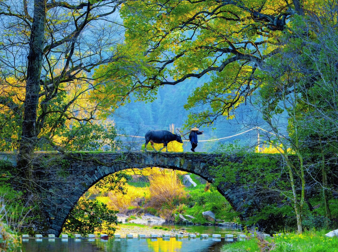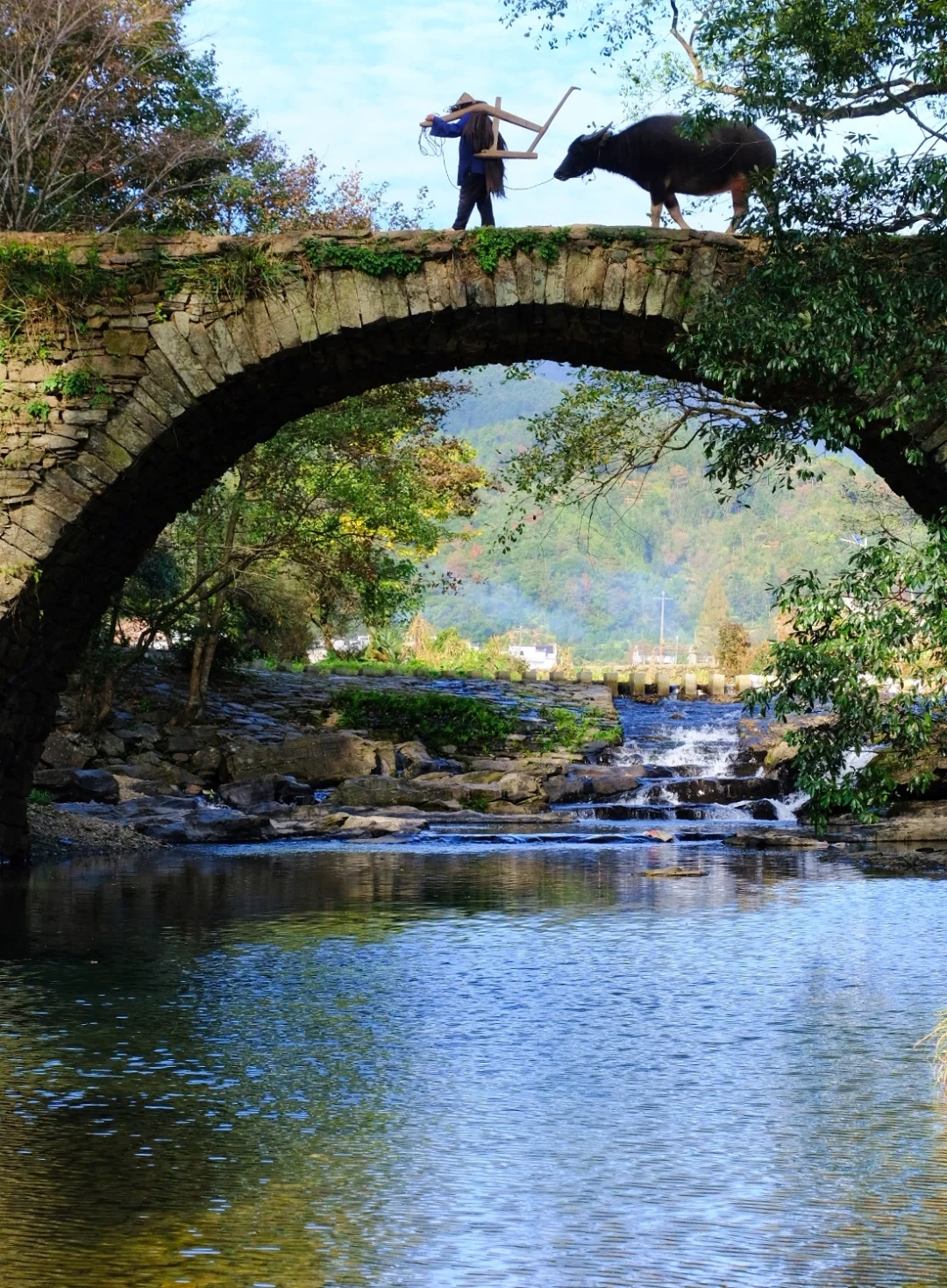 察关村迄今一千二百余年;是巴金先生的好友詹剑峰先生故里。这里背靠青山,山下清晰的溪河,溪河上有一座古桥,古桥上老汉放牛成为当地特色的人文景观。很多摄影爱好者都要到此地拍摄:老人身披蓑衣,头戴草帽牵牛过河的经典场面!到时候我们也会给大家安排一场,大家可以尽情拍摄!