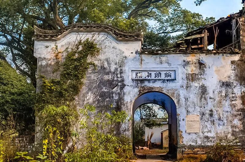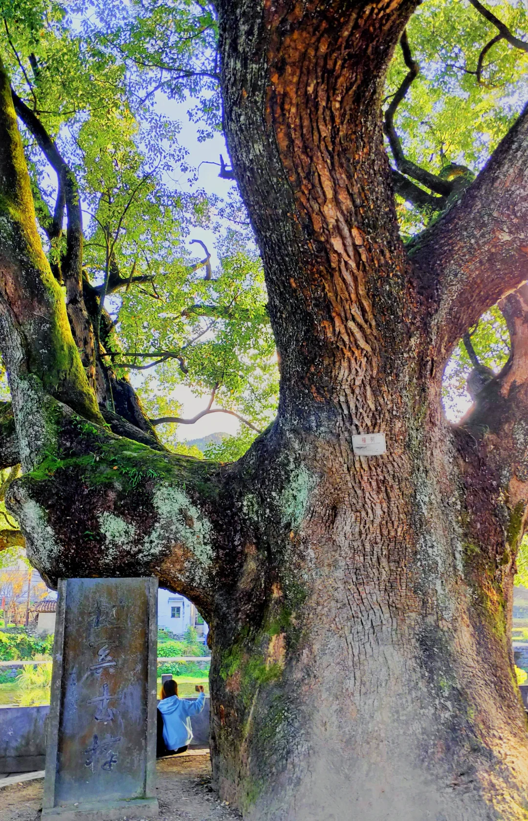 虹关古村建于南宋,有“吴楚锁钥无双地,徽饶古道第一关”之称。村头溪畔,兀然屹立着一棵古樟,树龄有1000余年,树高26.1米,直径3.4米,冠幅达三亩,气势非凡。有云“下根磅礴达九渊,上枝摇荡凌云烟”,被誉为“江南第一樟”。