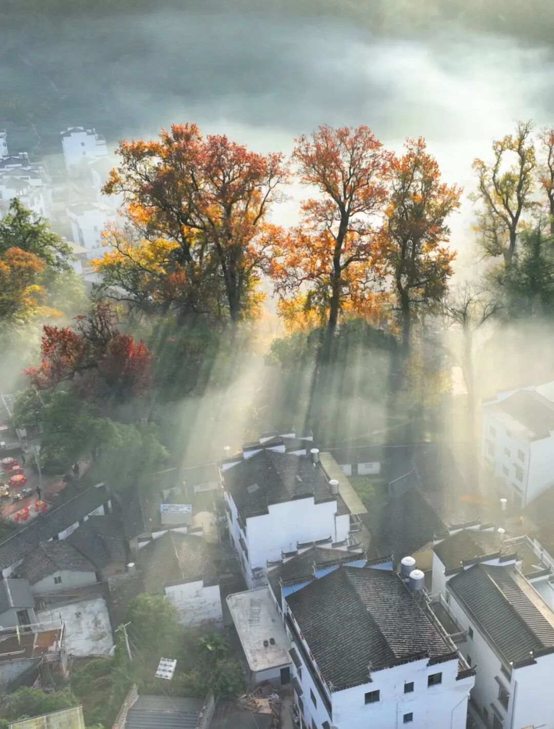 被晨雾缭绕的人间仙境,婺源的石城也被称之为“枫林观景区”,枫树群染上一片红色,在晨雾与炊烟得笼罩下,构成了如梦幻般的仙境。