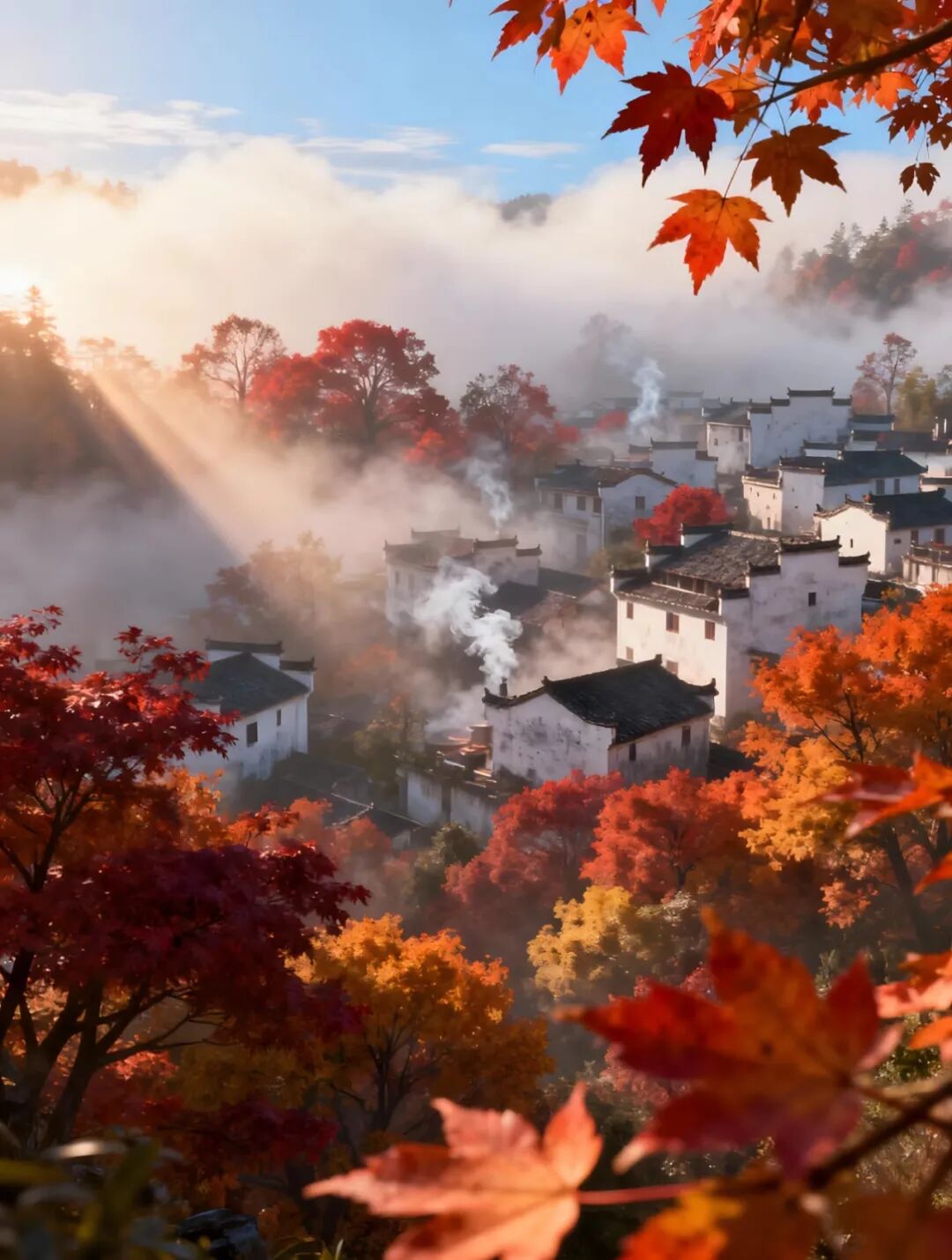 长溪依山傍水的徽派古村落掩映在成片的红枫之中,秋天的婺源如同一幅水墨山水画,秋到婺源,长溪村和石城村是两个必到的村落,也是婺源赏枫精华地。