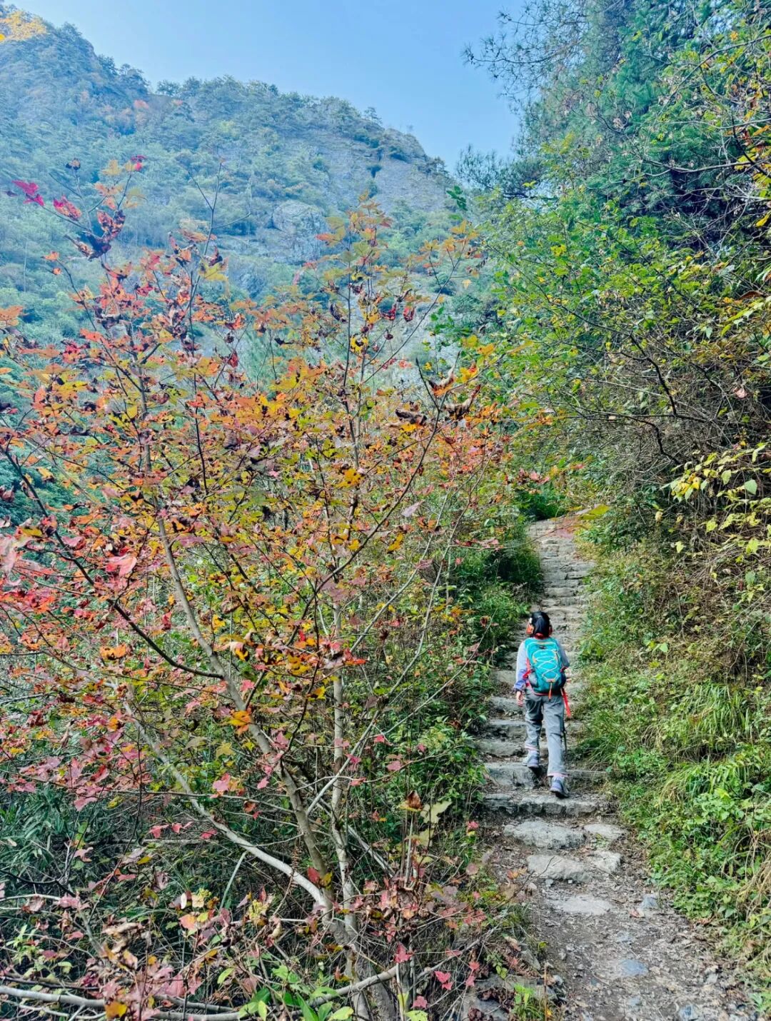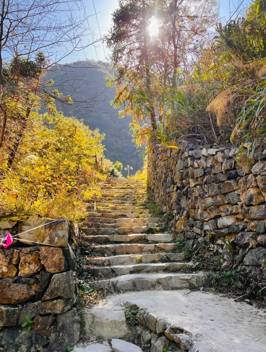 大家跟着领队的步伐,踏上了石板的台阶,正式开始【徽杭古道】徒步,明代兵部尚书胡宗宪、红顶商人胡雪岩、一代文豪胡适、著名徽商胡沇源等许多名人志士就是经这走出大山,成名天下。一路沿着崇山峻岭,古道盘旋,这条路很美,青山绿水,云雾萦绕,自然风光绝佳。无论是春花,还是秋叶,都在鸟鸣溪语风声中尽情铺陈一种美丽、一种活力,行走其间,一路都令人赏心悦目。