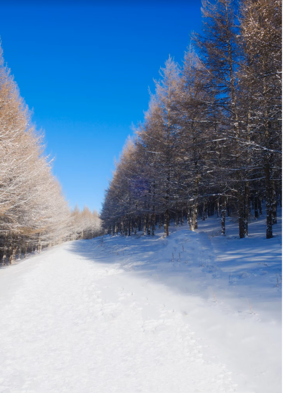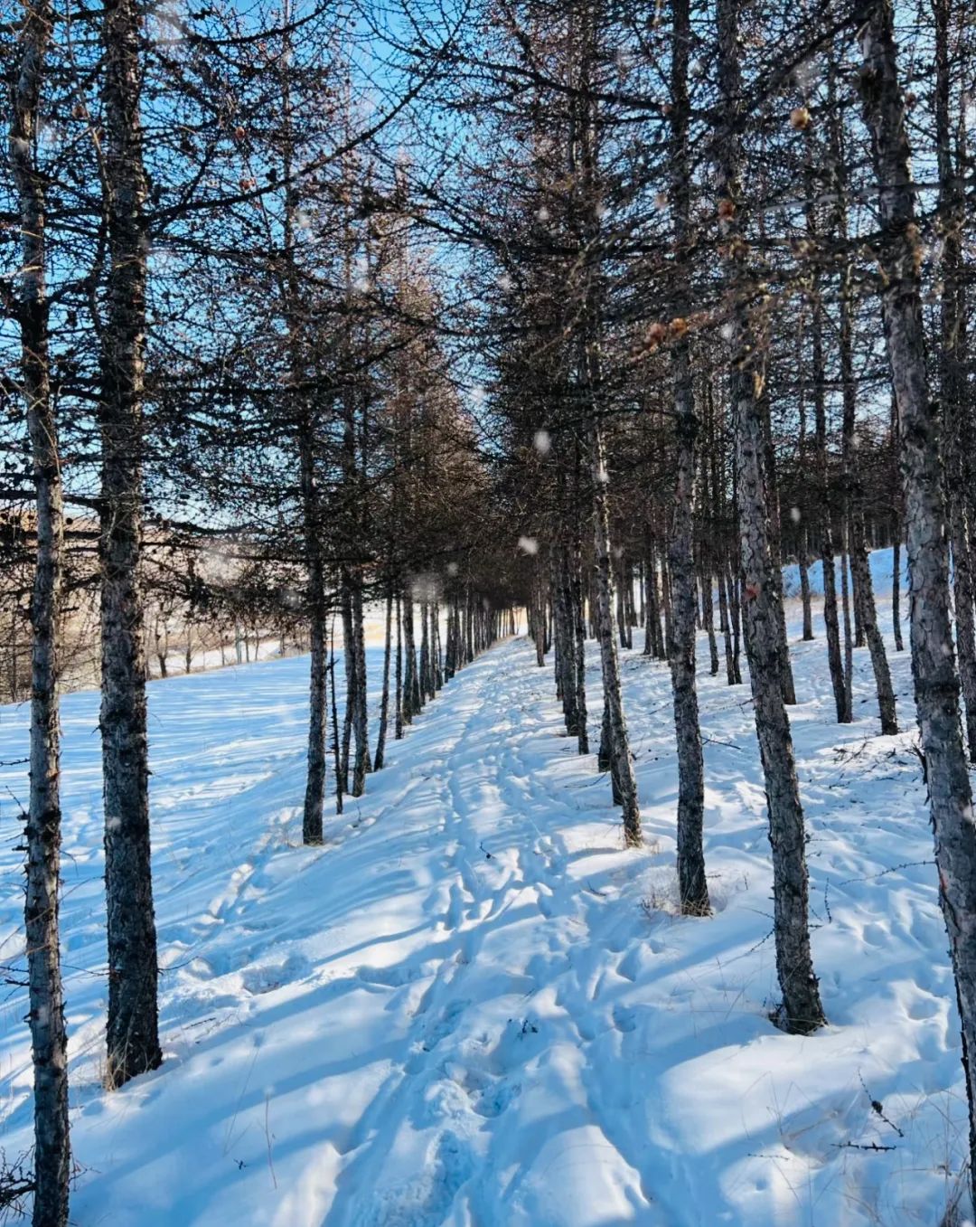 冬天白雪皑皑,一片北国风光,山上积雪数尺,整冬不化,区别于夏季的风景,但都超震撼。一场风雪过后,阳光明媚,登高遥望坝头,山峦森林,草地田间,一片白色景象,唯有公路被狂风吹得光滑如镜,突兀似一条黑色绸带,绵延百余公里。