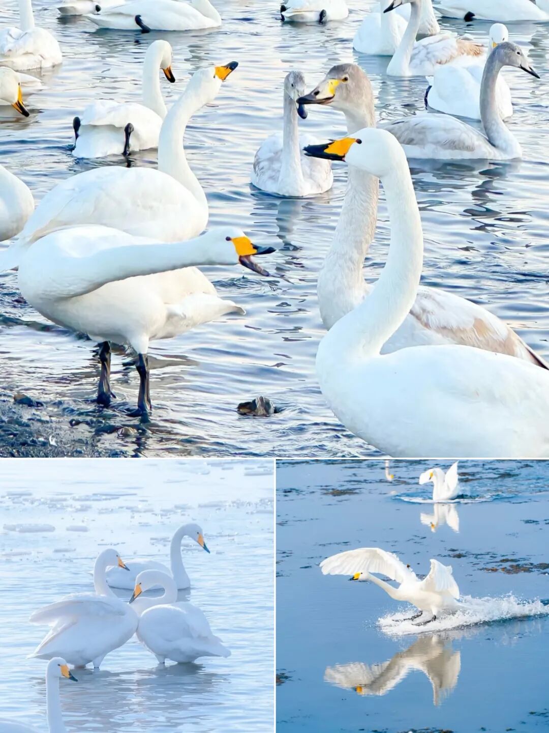 每年11月份以后,大批的天鹅迎着西伯利亚的冷空气逆风飞翔,不远千里万里,来到荣成过冬。成千上万只野生的大天鹅从遥远的西伯利亚、贝加尔湖、新疆和内蒙成群飞到荣成的海湾和湖泊栖息越冬。烟墩角天鹅湖就是其中之一,烟墩角也因此有了“天鹅村”的美誉。