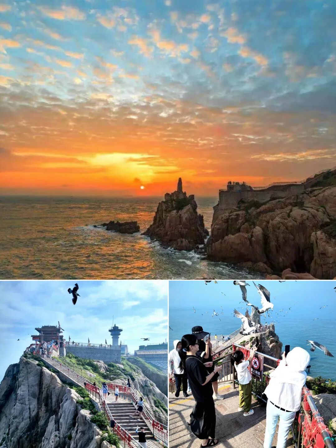 - 今天我们一早要去成山头景区,迎接中国海岸线第一绥阳光。到了景区以后,游览号称中国海岸线最东端的中国好望角、始皇庙等景点。 成山头又名“天尽头”,三面环海,一面接陆,与韩国隔海相望,因地处成山山脉最东端而得名。曾被《中国国家地理》评为“中国最美的八大海岸”之一,自古就被誉为“太阳启升的地方”。这里是最早看见海上日出的地方,与海南三亚的亚龙湾、台湾基隆的野柳一起名列三甲。站在观海长廊上举目望去,面前是浩瀚大海,将军石、小石林等礁石林立,风光尽收眼底。