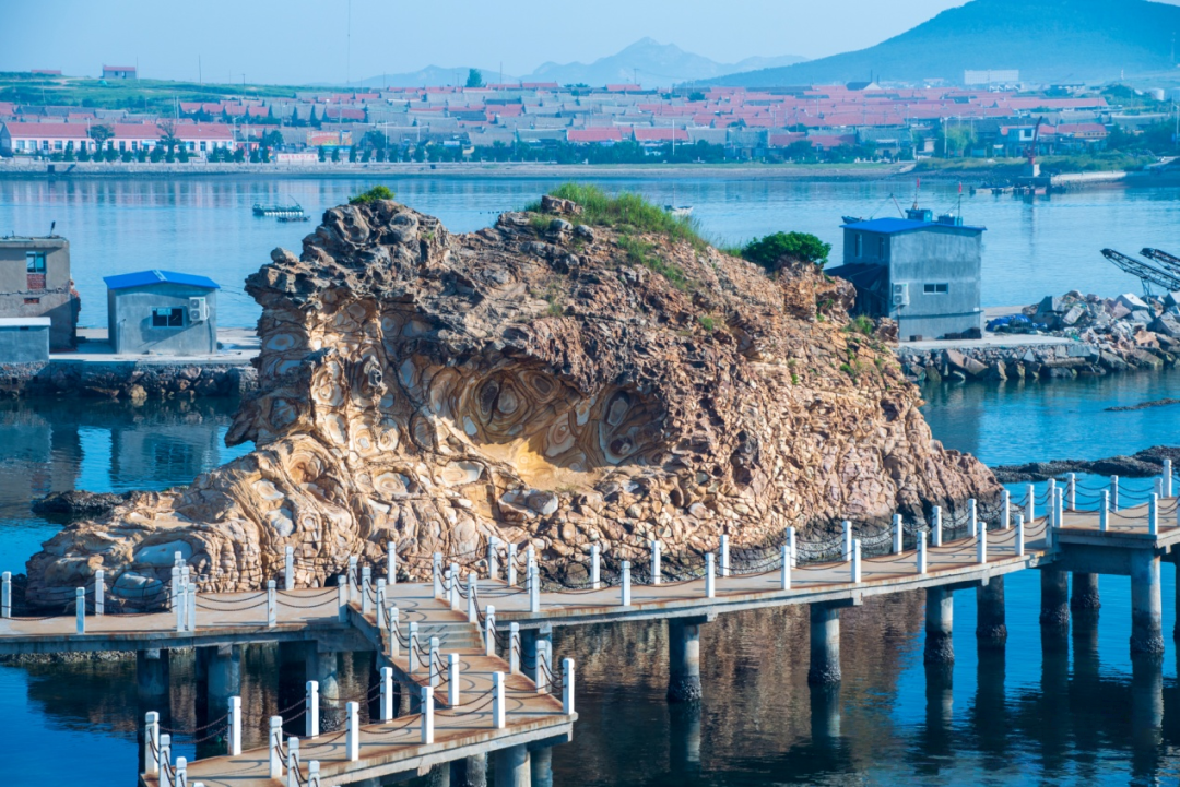 花斑彩石去烟墩角,还可以观赏一下花斑彩石。相传是女娲补天之五色石遗落海中化成。实际上此石为古生代寒武纪燕山运动所形成。彩石天然独特的形态,有中华海上第一奇石的美称。花斑彩石位于马道镇烟墩角村东南方海中,距岸50多米,长约35米,宽约20米,高约9米,花斑彩石主要由黄、白、褐三种颜色组成。