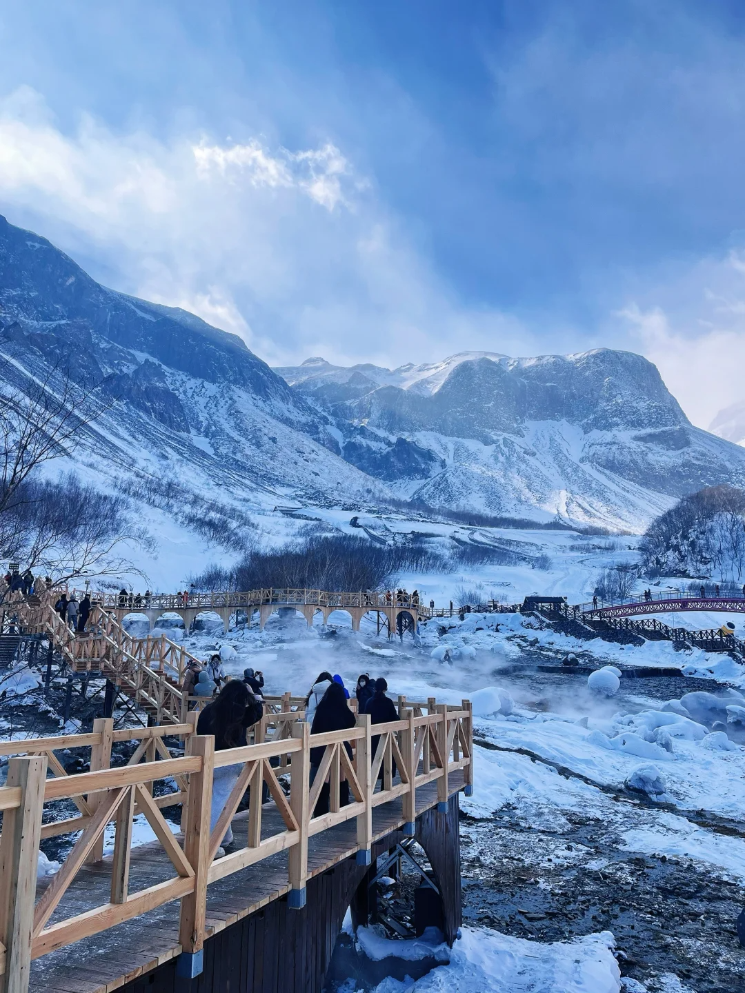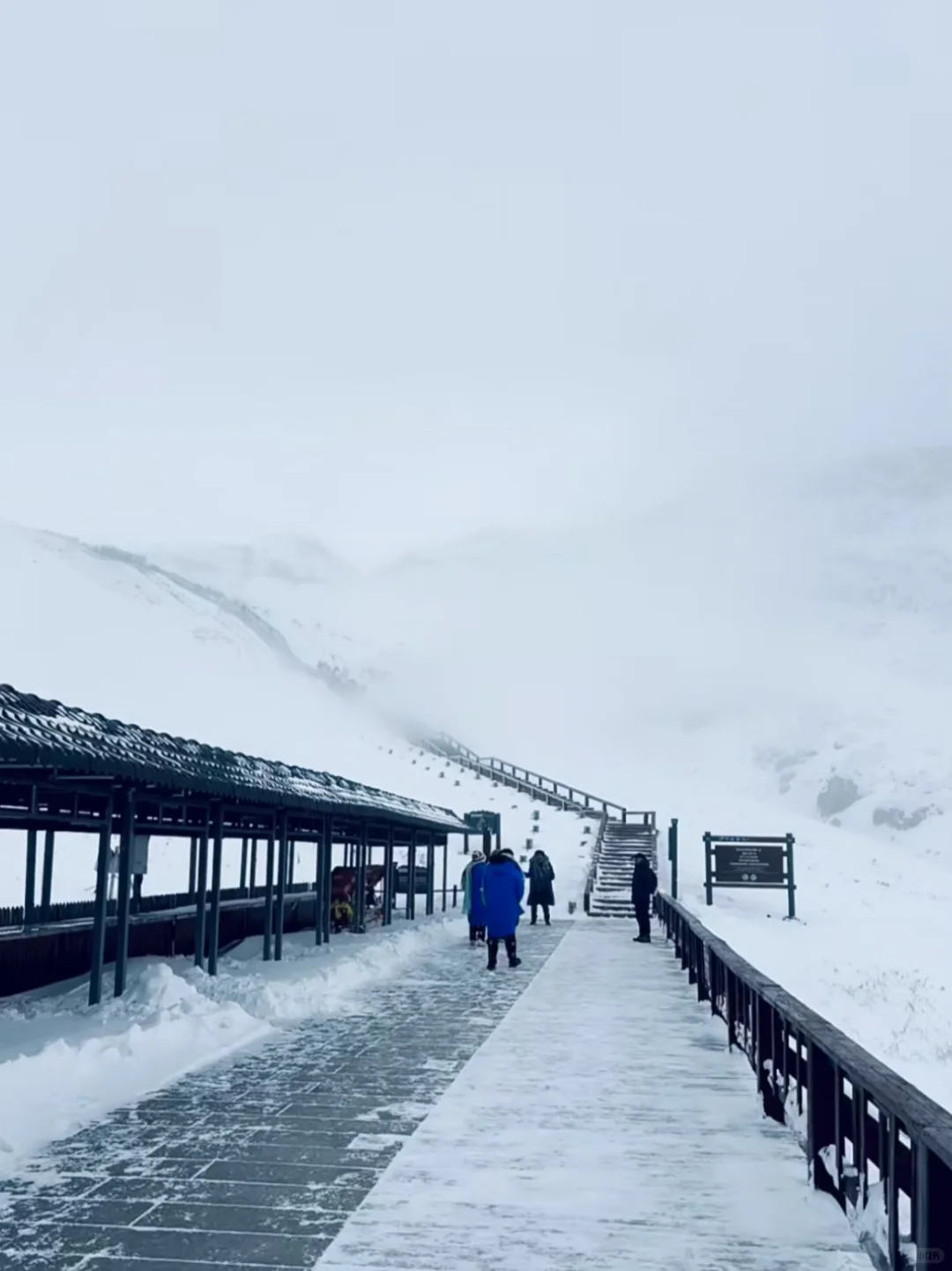 4)小天池从瀑布到小天池中间的厚雪栈道穿行。体验感很棒的。这里也是电视剧《雪山飞狐》取景地。