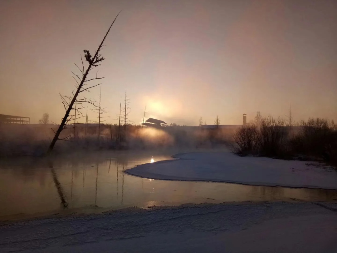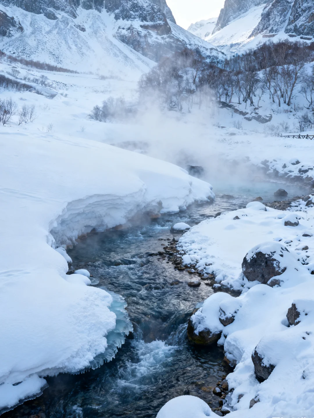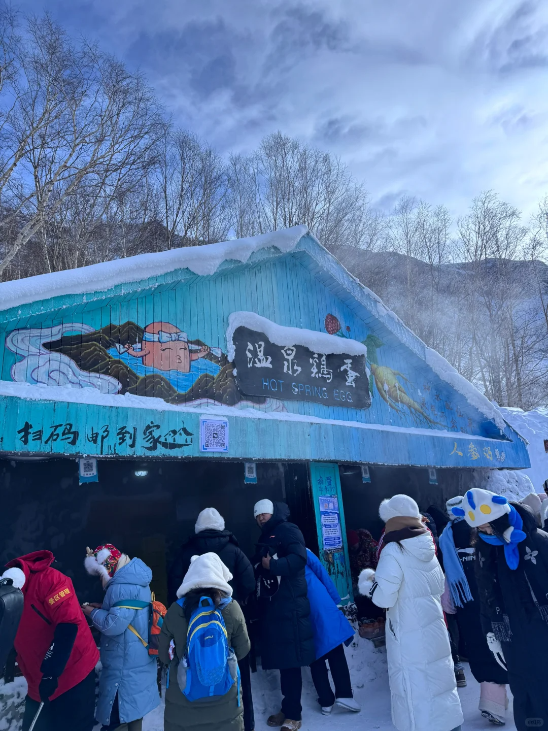 3)温泉 聚龙吐温涎,天冷升华烟。温泉周围白雪皑皑,一股热气蒸腾,旁边的树枝也都挂满了雾凇,这里10元3个的温泉鸡蛋一定要吃吃,像果冻一样的口感,