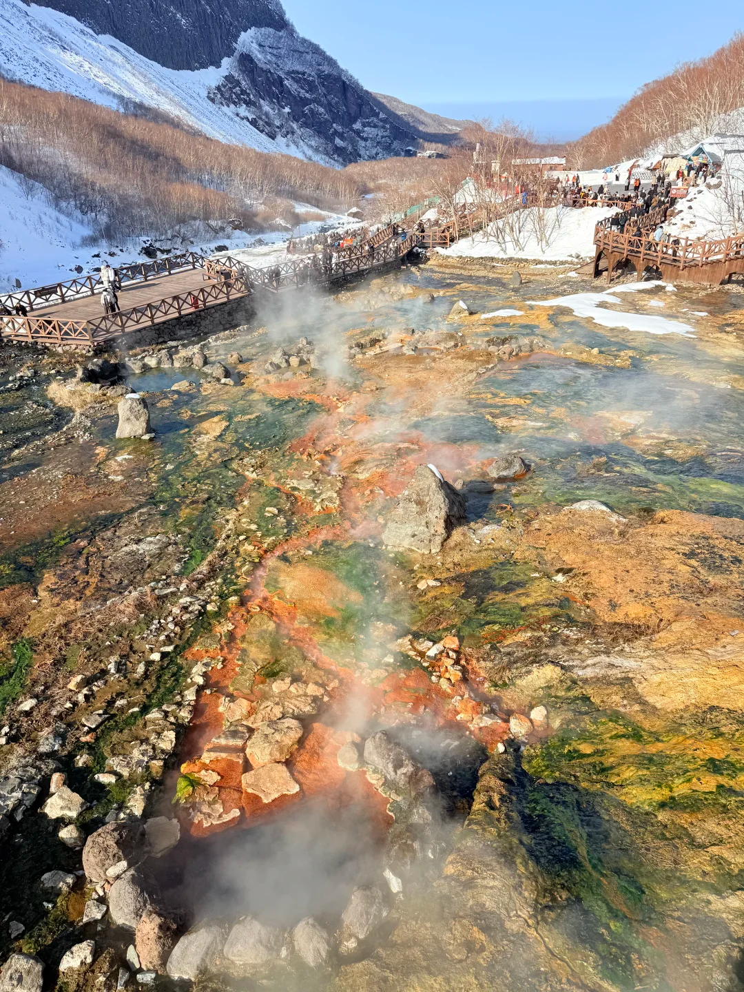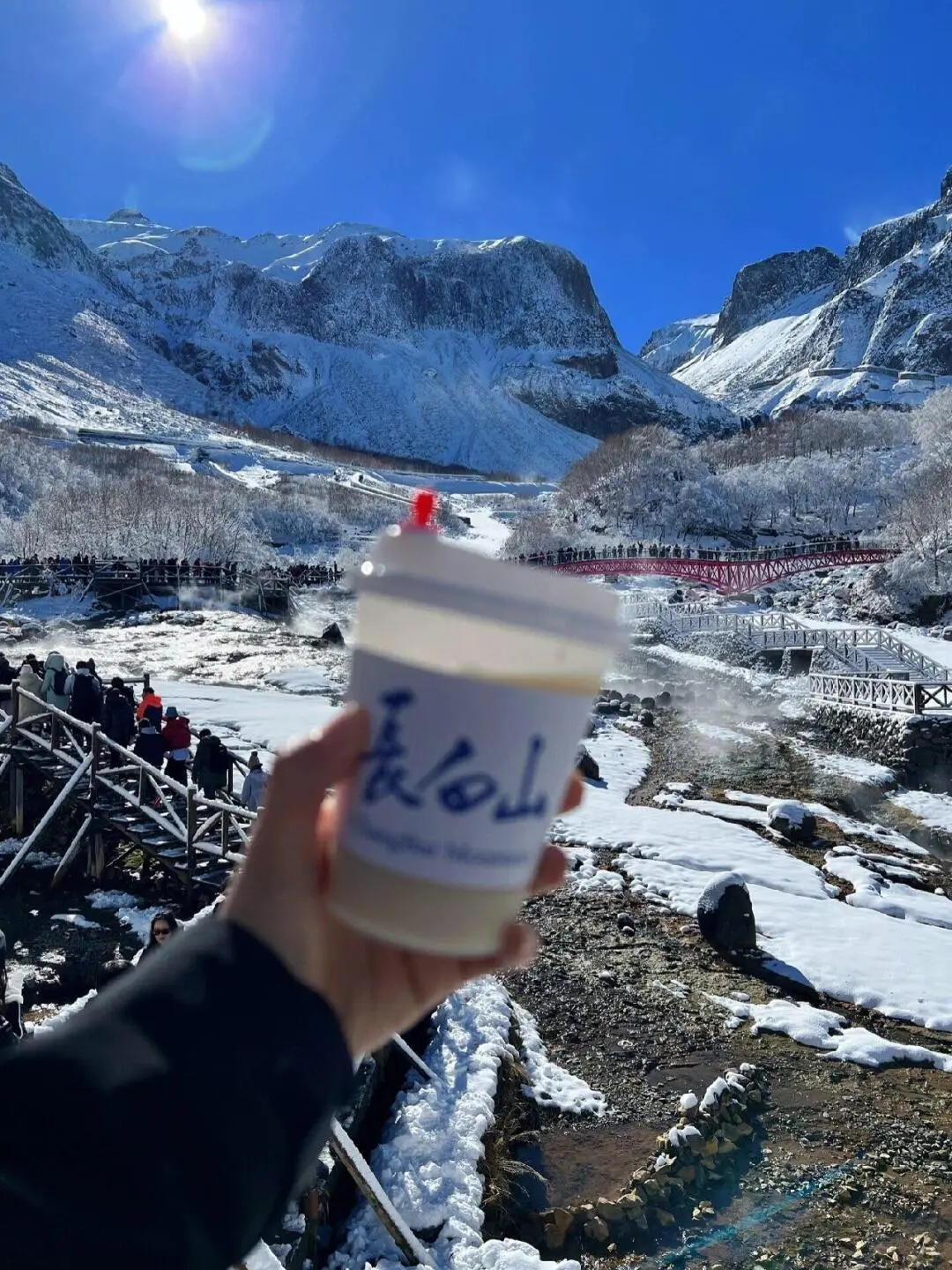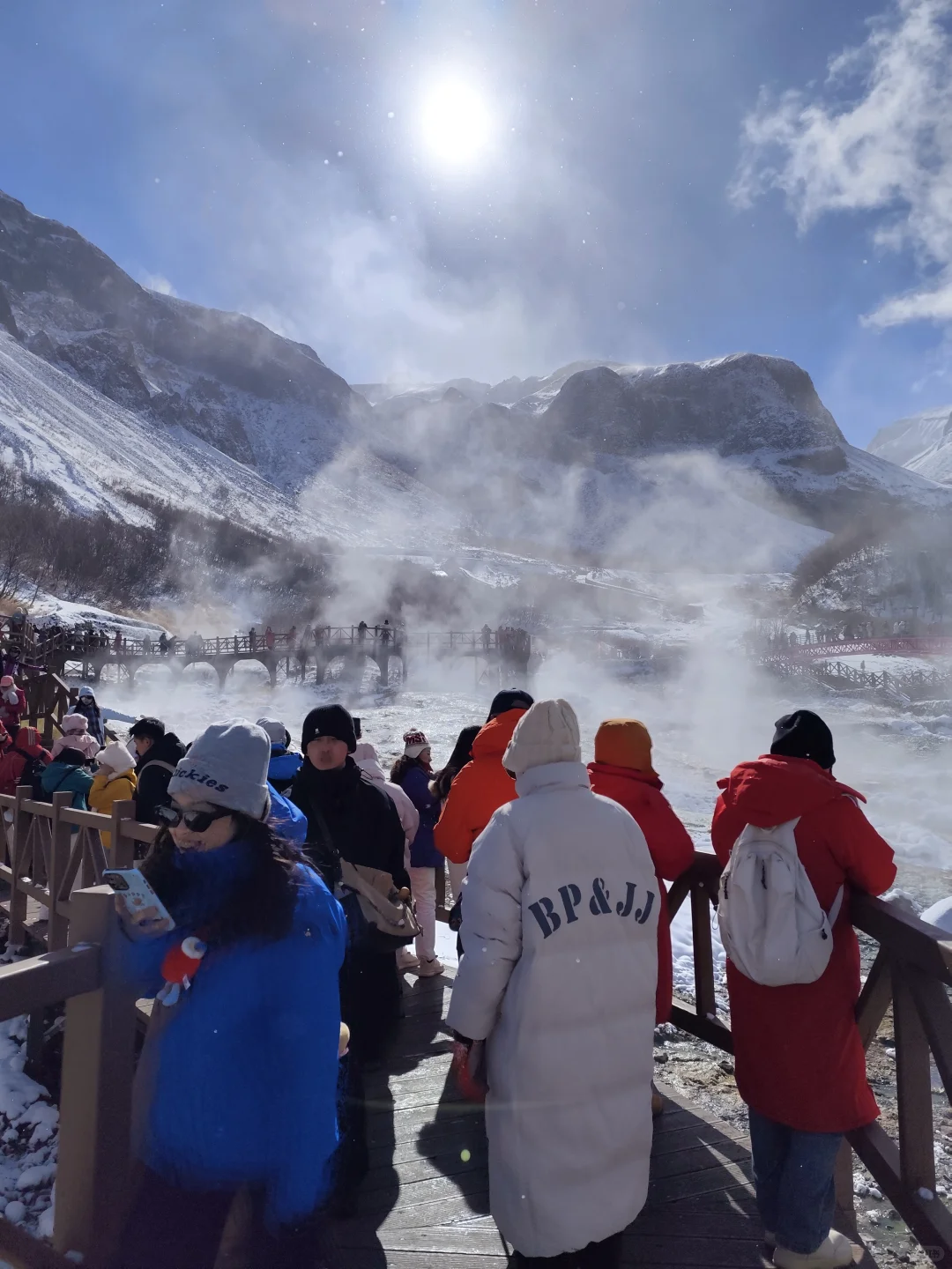 3)温泉 聚龙吐温涎,天冷升华烟。温泉周围白雪皑皑,一股热气蒸腾,旁边的树枝也都挂满了雾凇,这里10元3个的温泉鸡蛋一定要吃吃,像果冻一样的口感,