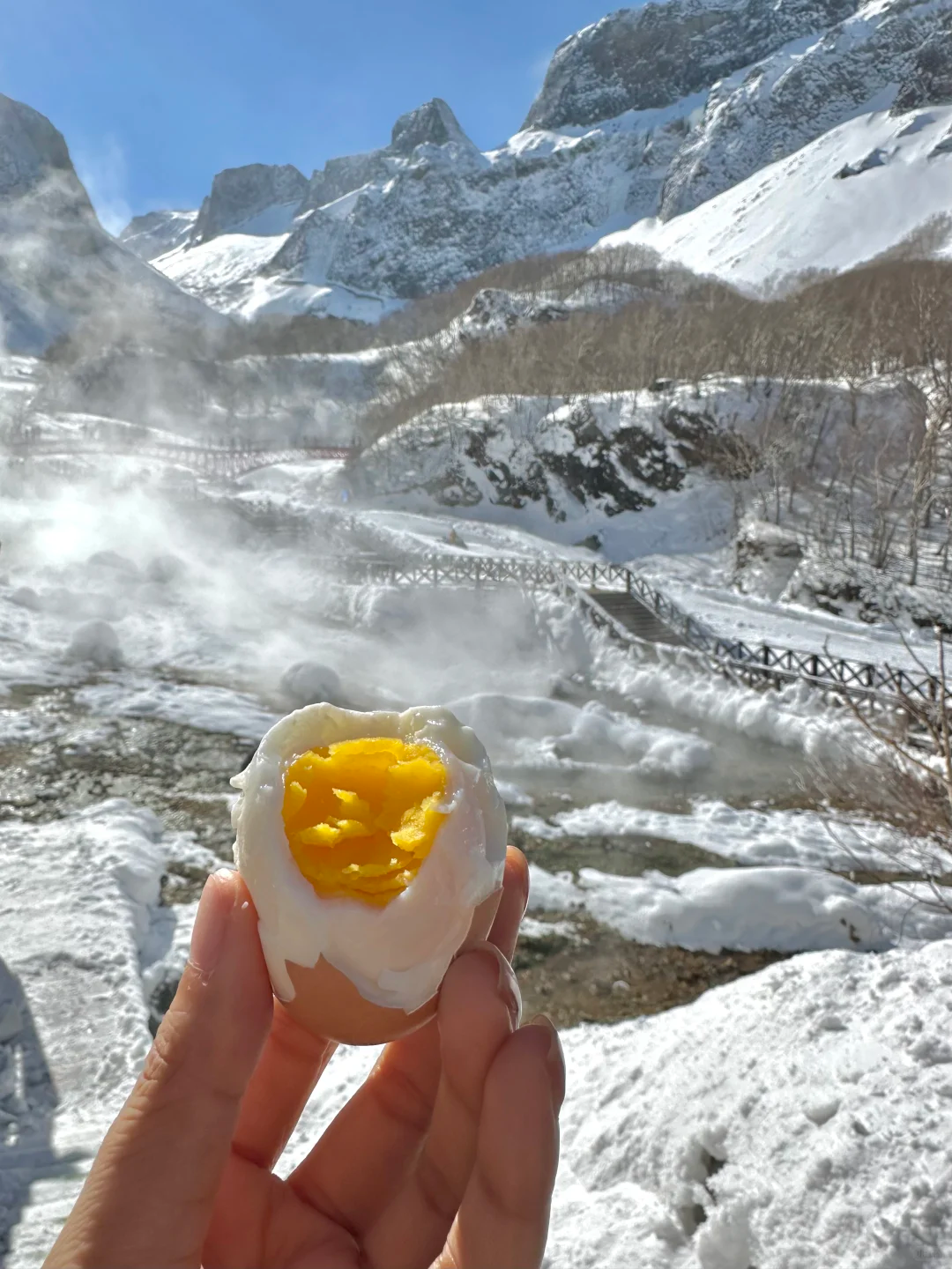 打卡温泉煮鸡蛋 温泉煮鸡蛋,十元三个,蛋黄熟了,蛋清却还是软软的,半生不熟,嫩嫩的真的很好吃,来来来!温泉鸡蛋尝一个!