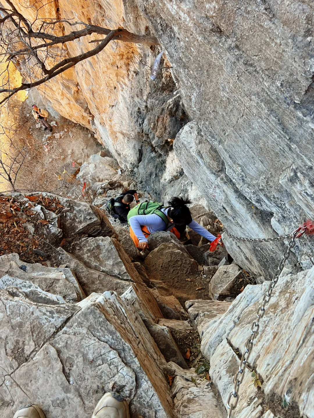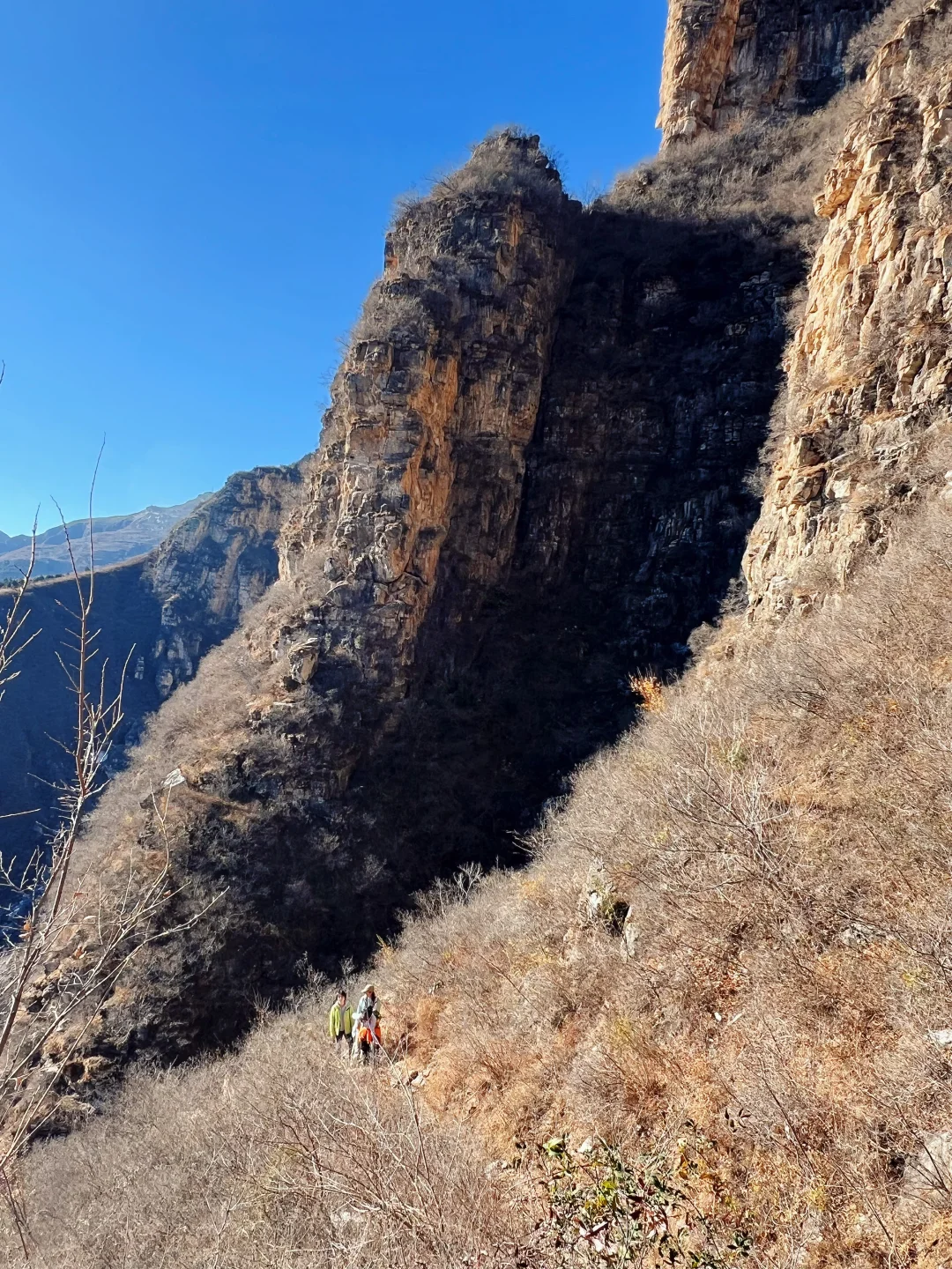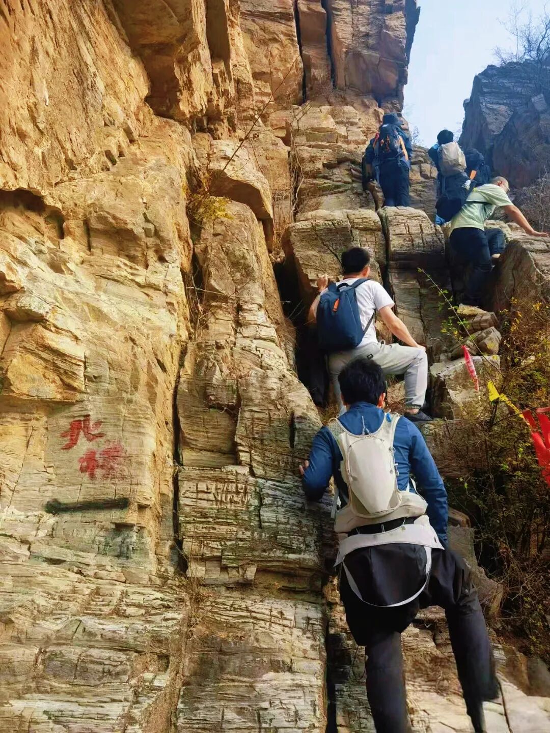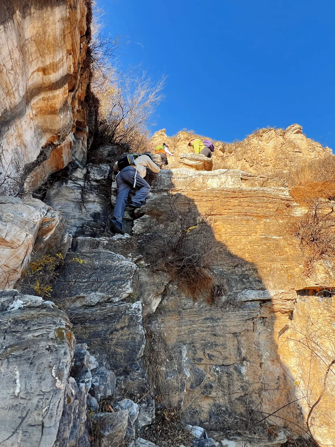 本次徒步自圣水峪村开始,走村道和土路抵达北梯,四肢并用攀爬上升后迎来一段山脊平坦道路,然后经南梯下降,经平坦村道回到圣水峪村结束,部分路段较为陡峭,新弱及恐高者勿报。全程10km,爬升700m,下降700m,属于初级进阶强度。