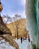 往日流水潺潺的河溪,凝结成洁白的“玉带”在山涧舞动。悬挂在崖壁之上,山谷之下,一派琼妆玉砌,凝固成冰瀑,冰床,冰梯,冰花,冰凌,闪着银光,似乎把人带进了瑶池仙境。这酷似晶莹剔透的童话世界,是老天赐给我们的冬日最美好的礼物。