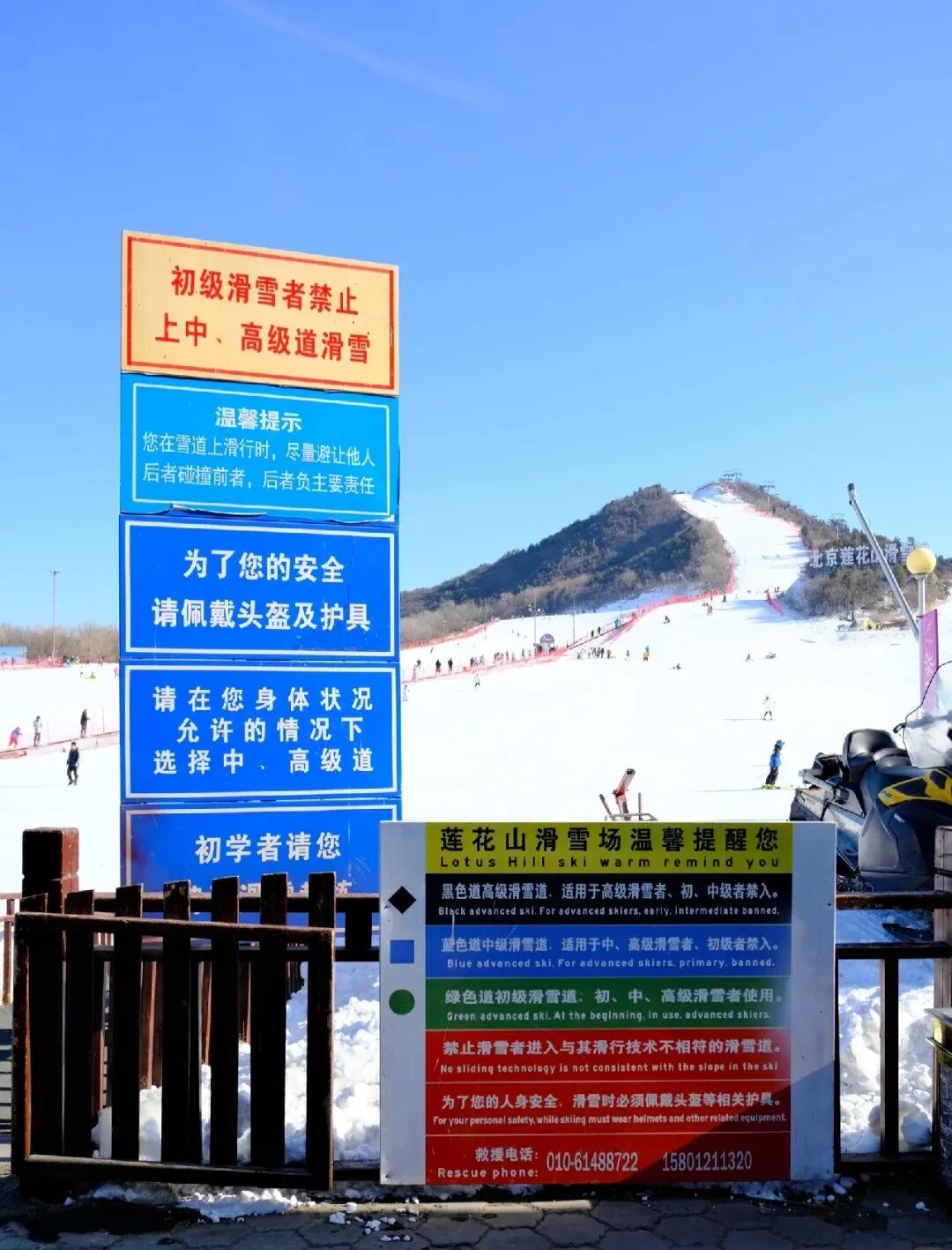 5、初学者请不要直接上中级道和高级道,缆车基本都是中级雪道,对自己的安全负责人;
