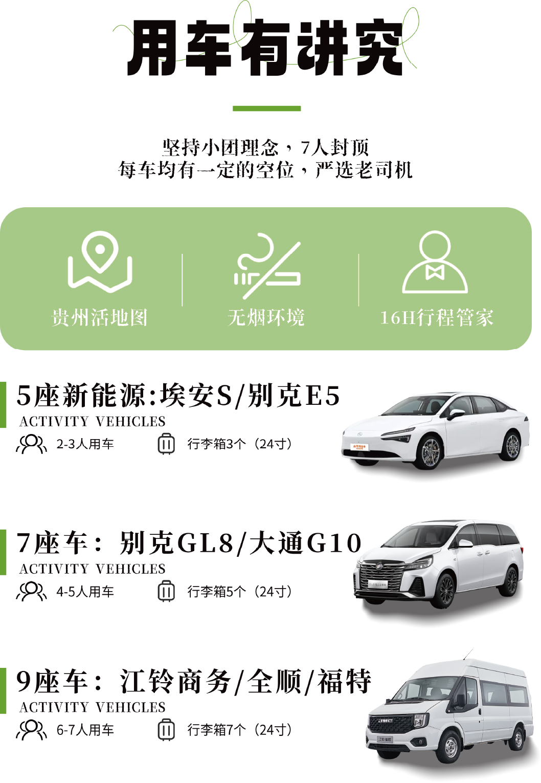 用车:当地行程用车(根据人数适配5-9座车)