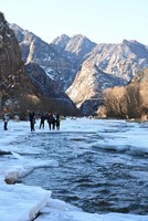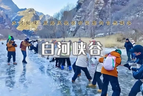 - 10:00|到达白河峡谷,开始漫步在白河峡谷大自然的冰面上,体验冬季最美冰上之旅;仅是在山野间踏冰徒步的体验就足以吸引人了,在白河徒步还有其他的惊喜,比如河流两旁的陡崖峭壁、沿途的村落和茅草屋、荡漾的芦苇、洁白的冰瀑、以及那个《让子弹飞》里经典的吃着火锅唱着歌的场景在现都会让此行非常的饱满。
