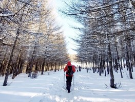 - 11:00|到达徒步起点,在领队带领下开始徒步。麻田的环穿只有10公里,难度不大,小天山山顶海拔2122米,麻田岭山脊向东连接东甸子梁,站在山项远望茶山,清浙可见,东南距离东甸子梁更是咫尺之遥,蓝天、白云、积雪,一幅天然的油墨画。