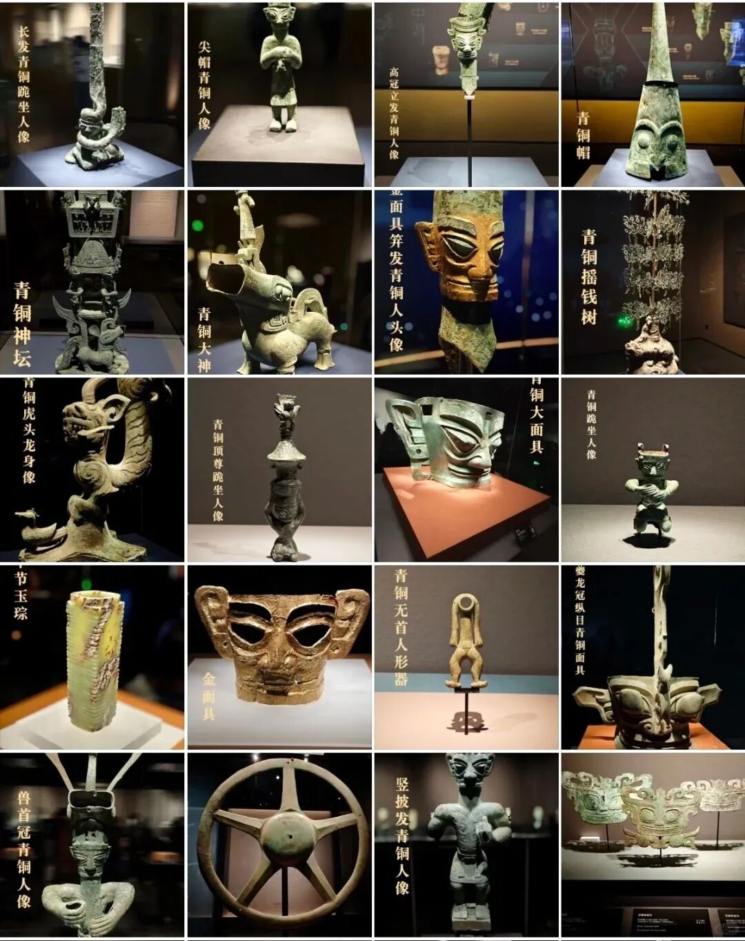 在这批古蜀秘宝中,有高2.62米的青铜大立人、有宽1.38米的青铜面具、更有高达3.95米的青铜神树等,均堪称独一无二的旷世神品。而以金杖为代表的金器,以满饰图案的边璋为代表的玉石器,亦多属前所未见的稀世之珍。