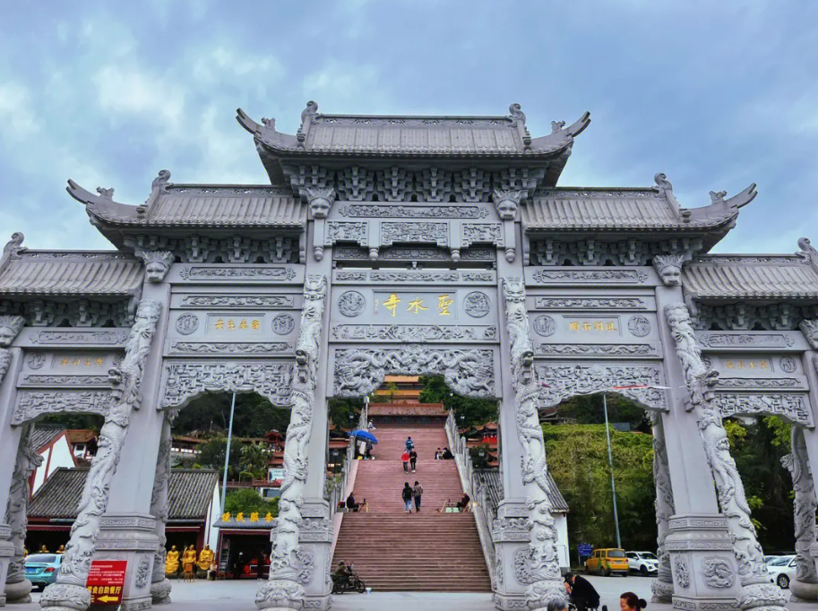 圣水寺,位于绵阳市城西涪江右岸的塔子山风景区,自古以龙泉圣水著名,最初名“甘泉寺”,其历史可上溯至唐永徽年间(公元 650~655 年),已历 1300 余年,堪称川西北历史悠久的古刹之一。
