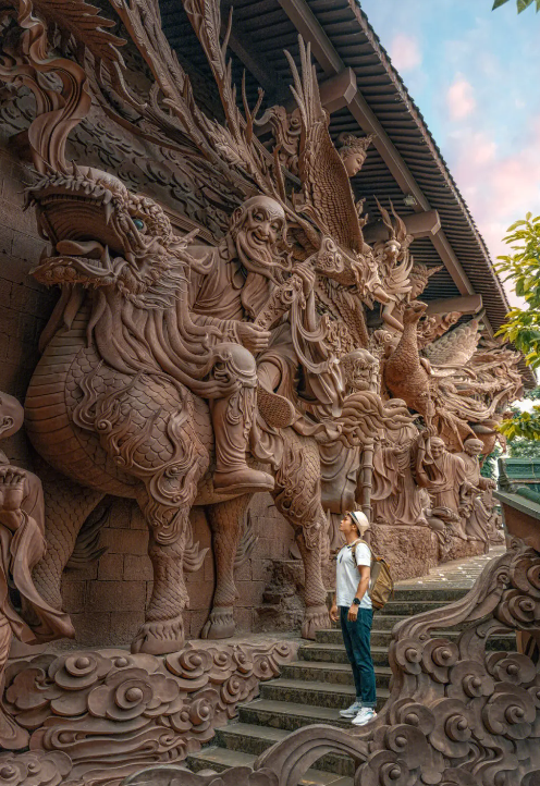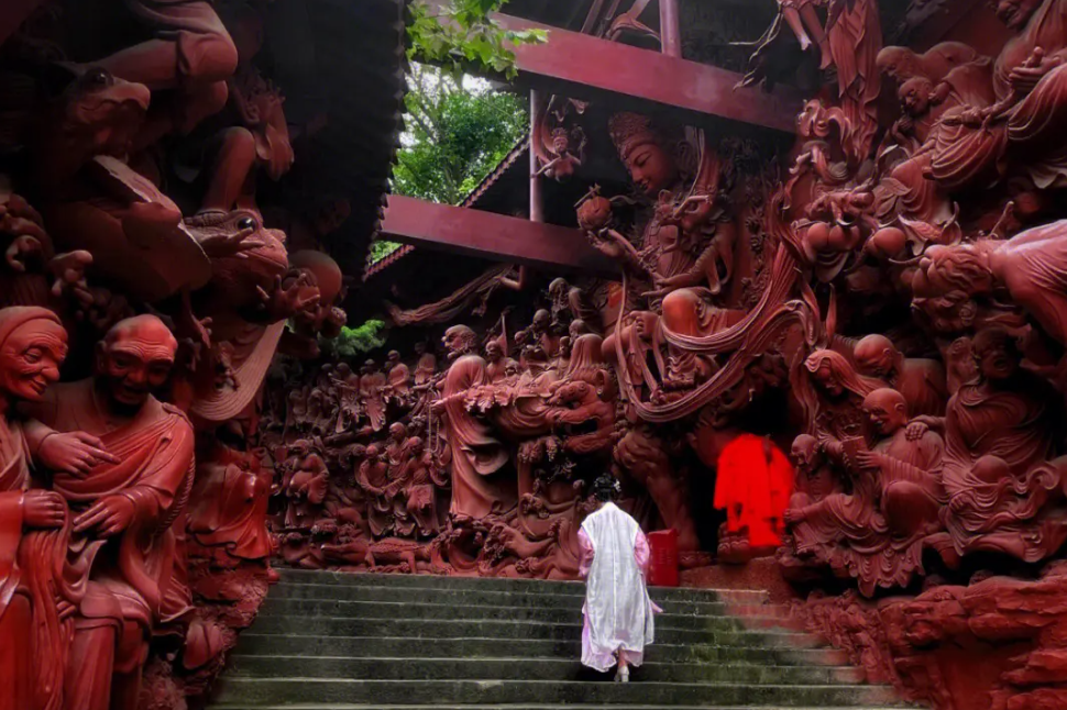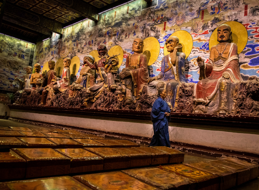 如今的圣水寺,是当代匠心精神下的恢弘巨作,十年磨一剑。圣水寺中,300余尊人物,200余种飞禽走兽,活灵活现地呈现在这200米长的浩瀚泥塑艺术长廊中。