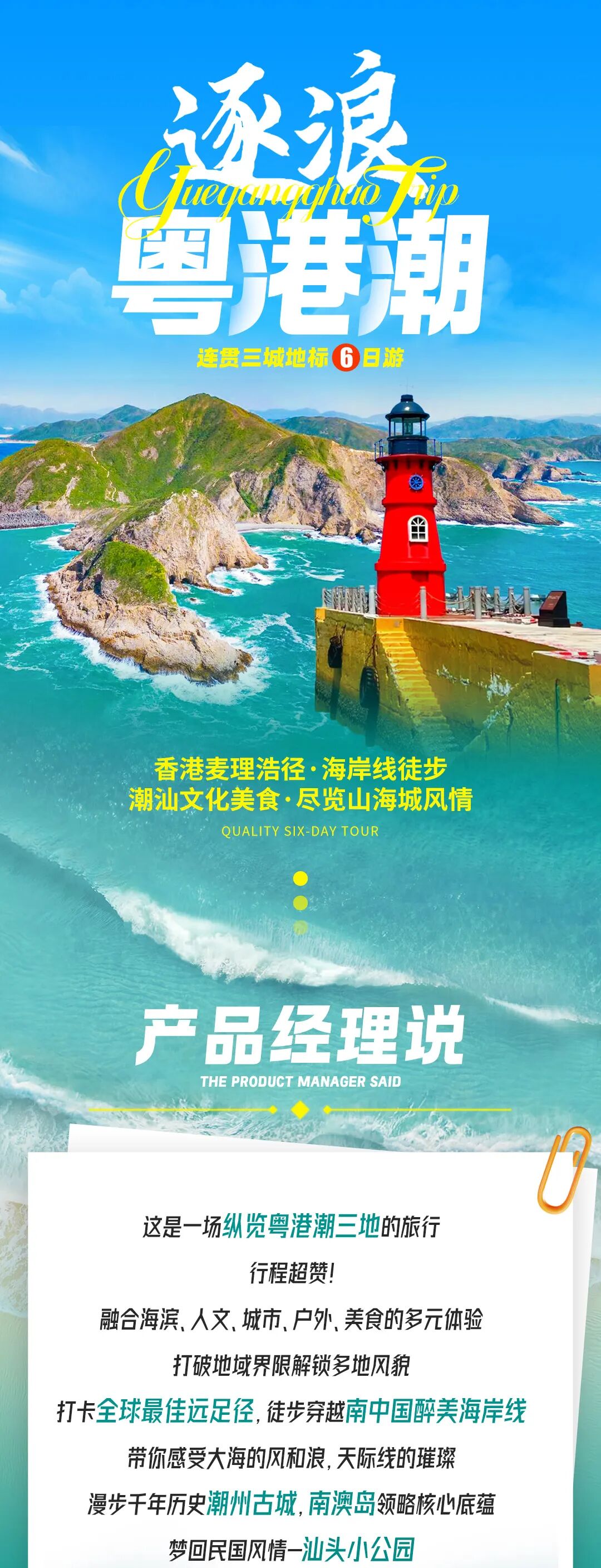 注意:如遇国庆,春节假期由于南澳岛堵车严重,第六日行程将改为汕头小公园,看英歌舞。