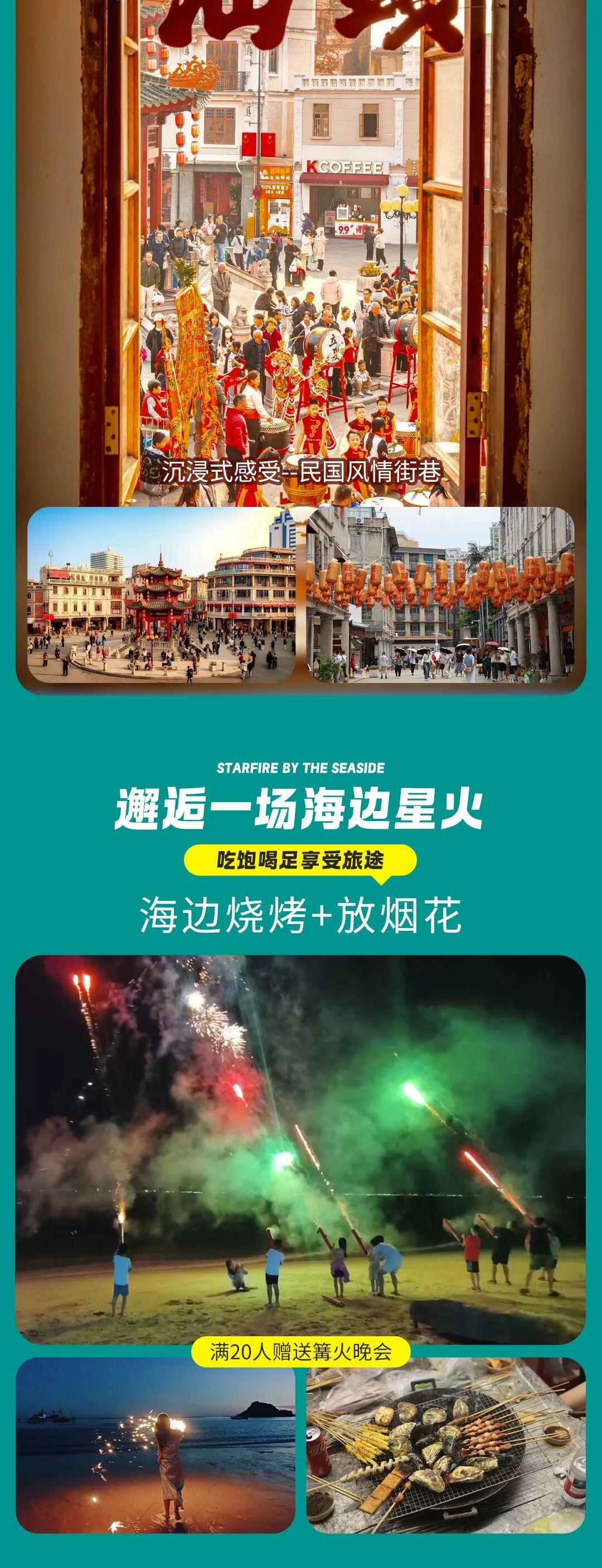 赠送海边烟花,当期超过20人增加篝火晚会;