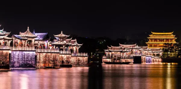 晚上,在韩江边赏古城夜景,看一场免费的凤城河灯光秀。灯光秀是与气势磅礴的潮州音乐紧密结合,绝佳视觉、听觉享受!