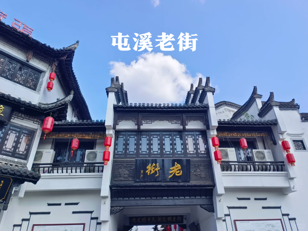 屯溪老街座落在安徽省黄山市屯溪区中心地段,北面依山,南面傍水,全长1272米,精华部分853米,宽5至8米。包括1条直街、3条横街和18条小巷,由不同年代建成的300余幢徽派建筑构成的整个街巷,呈鱼骨架形分布,西部狭窄、东部较宽。因屯溪老街坐落在横江、率水和新安江三江汇流之处,所以又被称为流动的“清明上河图” ,是中国保存最完整、最具有南宋和明清建筑风格的古代街市,也是中国“全国重点文物保护单位”。