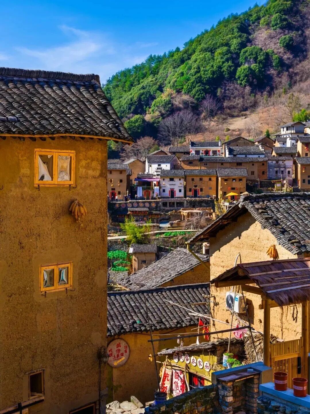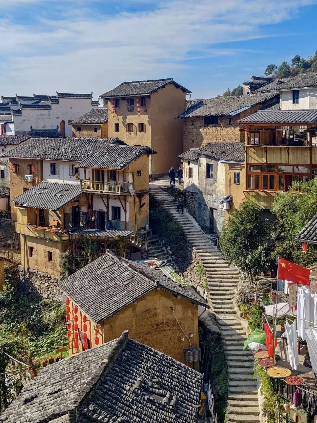- 下午|适时前往阳产土楼游览。阳产土楼是众多摄影爱好者喜爱之地,这里是一个依山而筑的山寨。由于地势高,交通不便,数百年来,山民就地取材,采周边青石铺路架桥,取红壤木材筑巢而居,日出而作,日入而息,渴饮山泉,饿食五谷,子孙延续。流年之中,形成了鳞次栉比、错落有致、质朴壮观的土楼群。